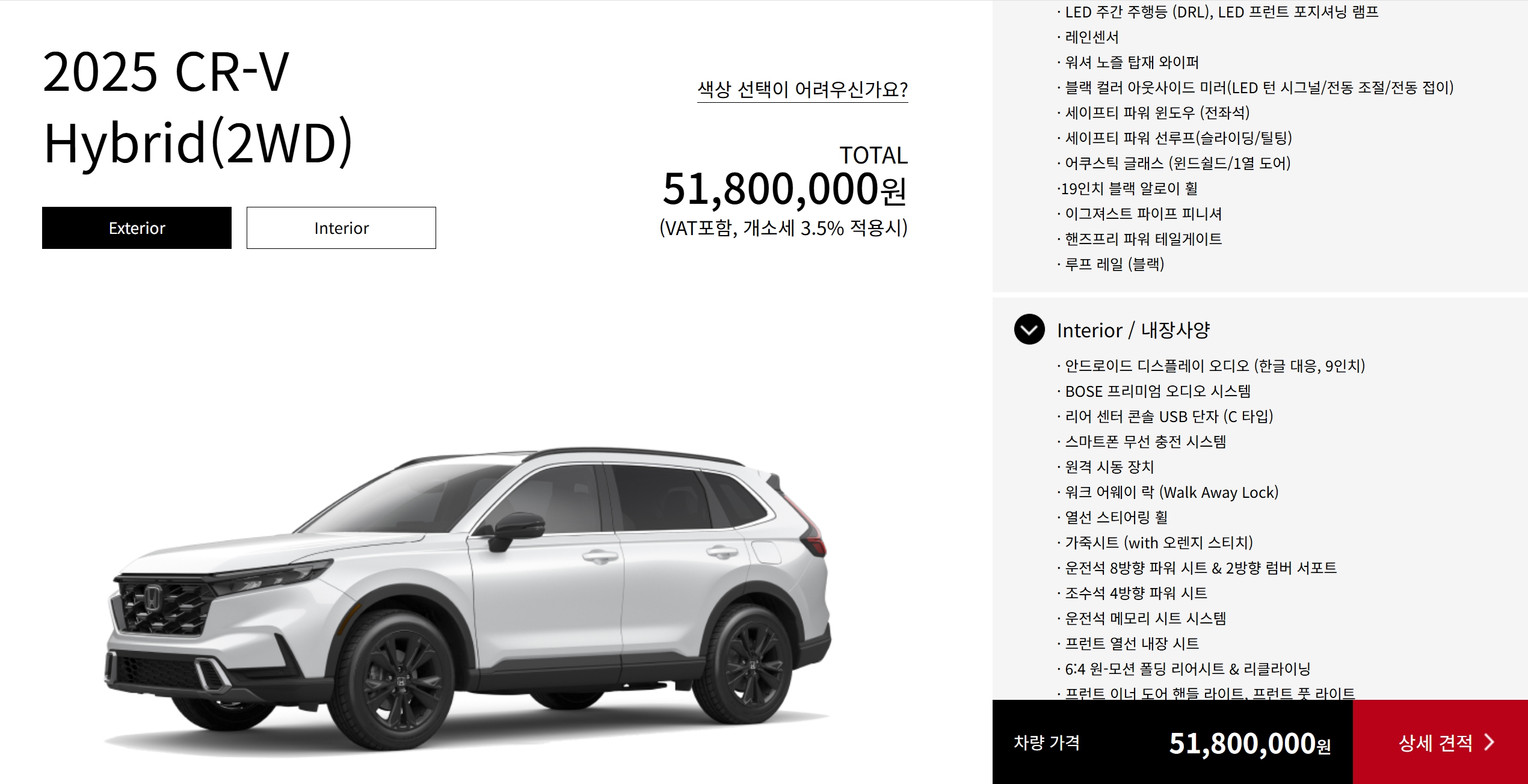 2025 CR-V 하이브리드 2WD : 5,180 만원