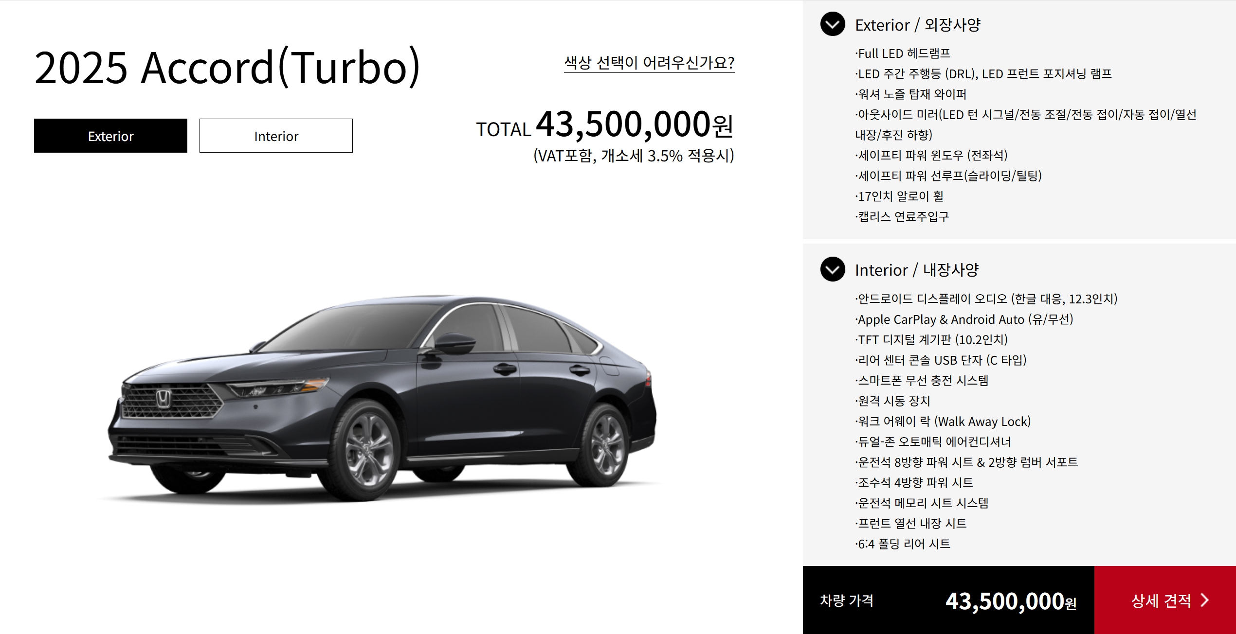 2025 혼다 어코드 : 4,350 만원
