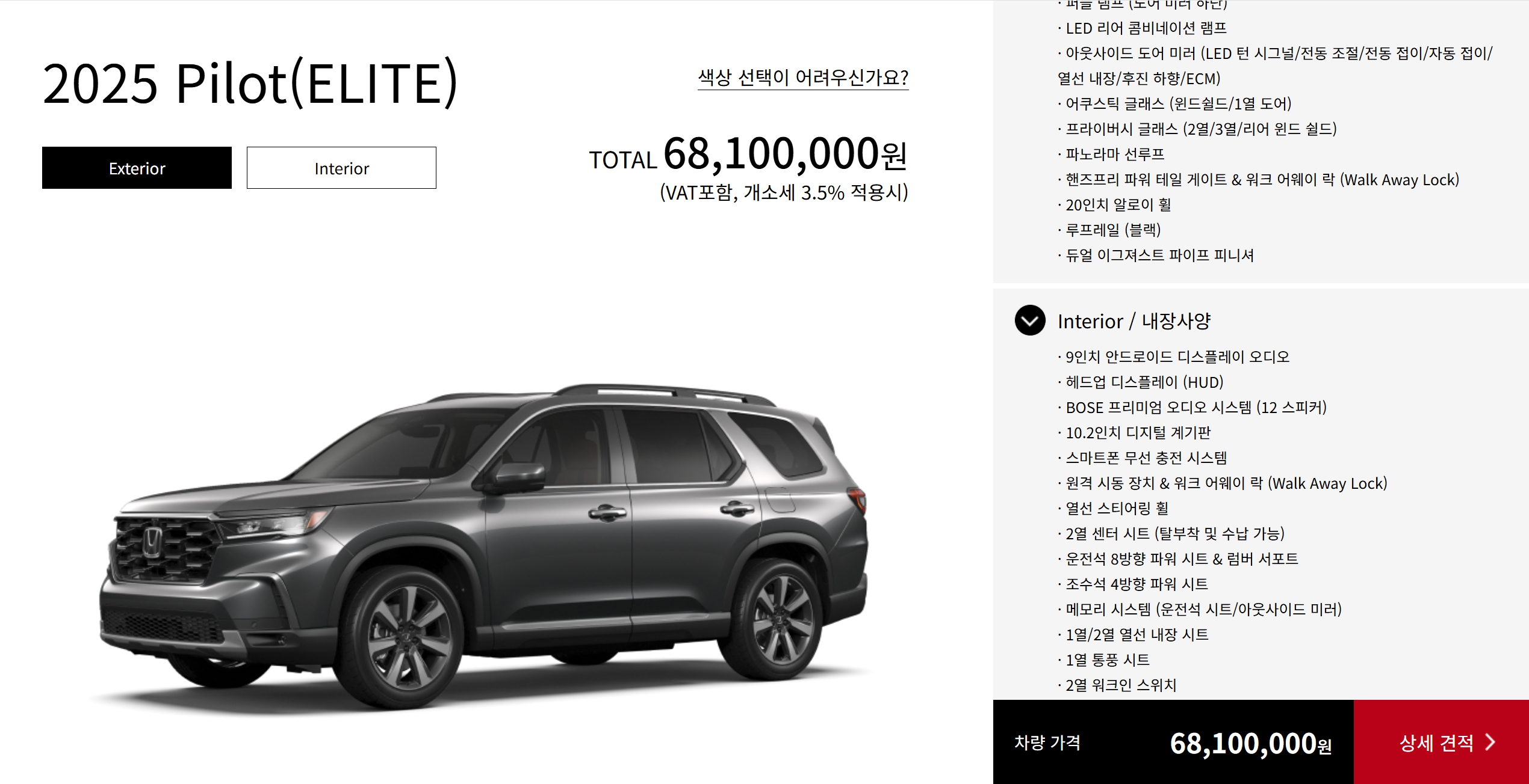 2025 파일럿 블랙에디션 : 6,960 만원
