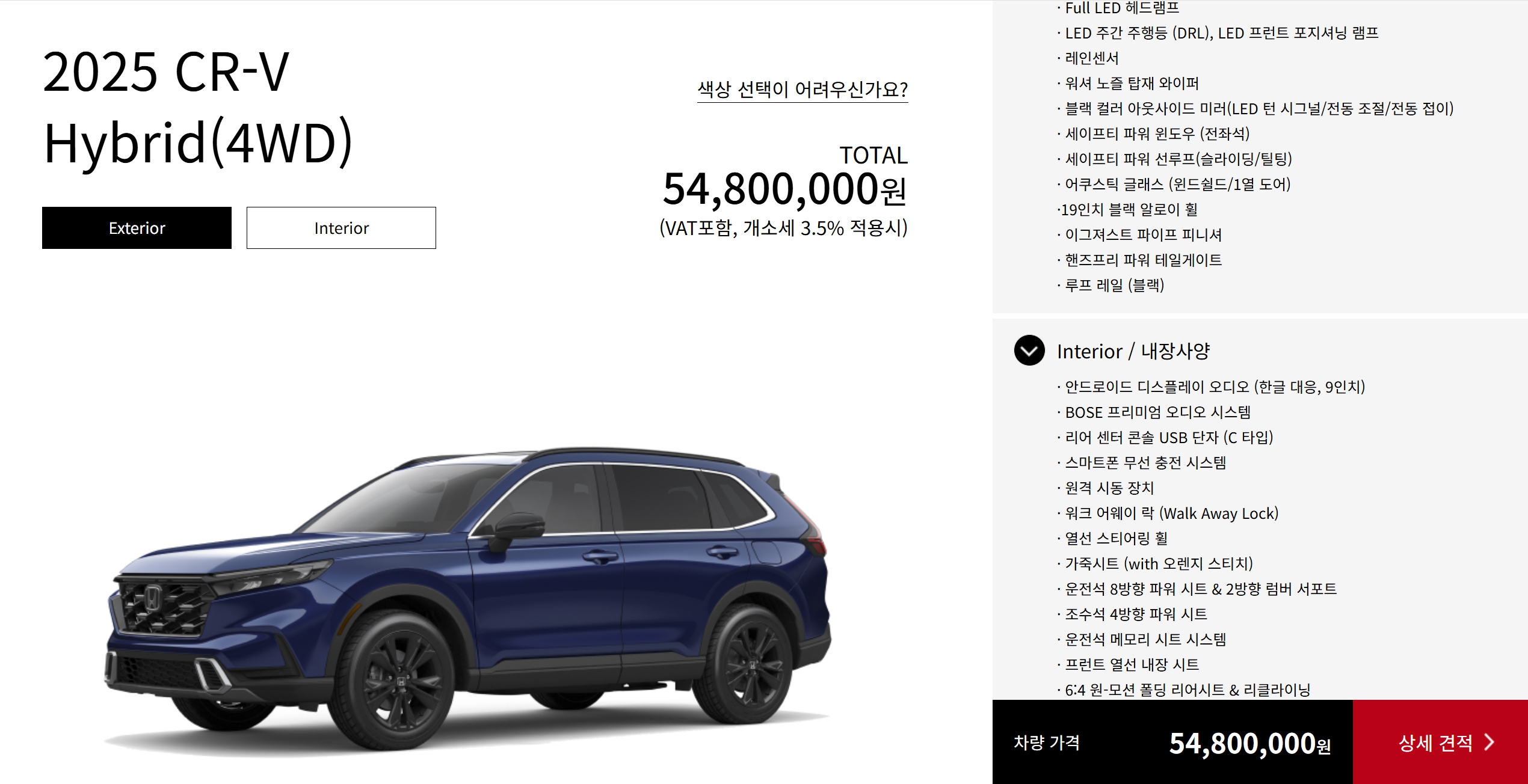 2025 CR-V 하이브리드 4WD : 5,480 만원