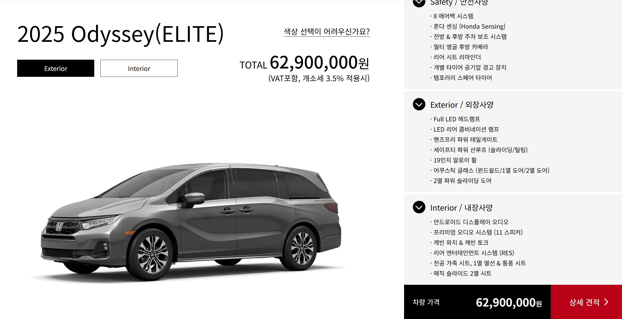 2025 오딧세이 엘리트 : 6,290 만원