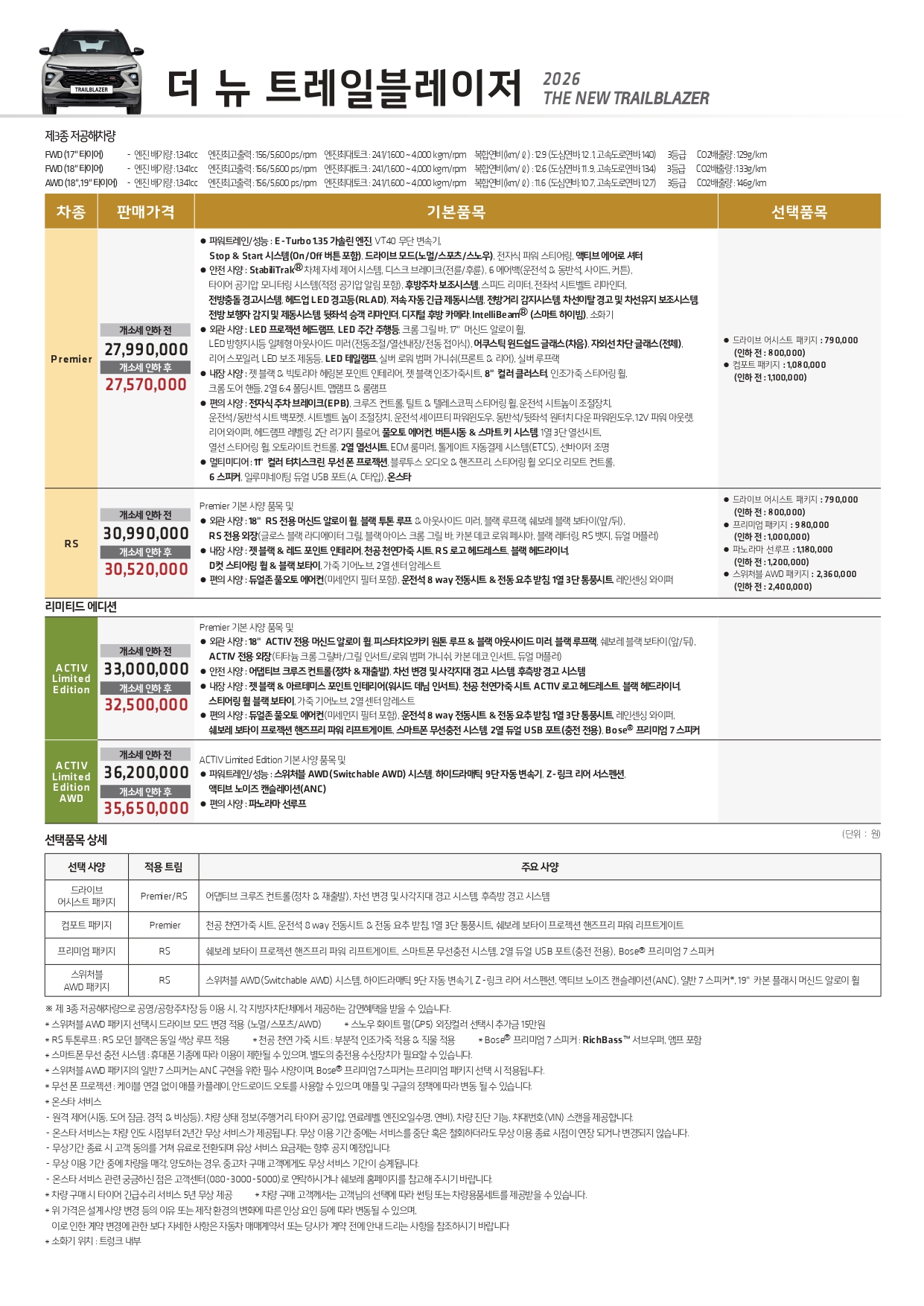 ▼ 2026 트레일블레이저 가격표 ▼