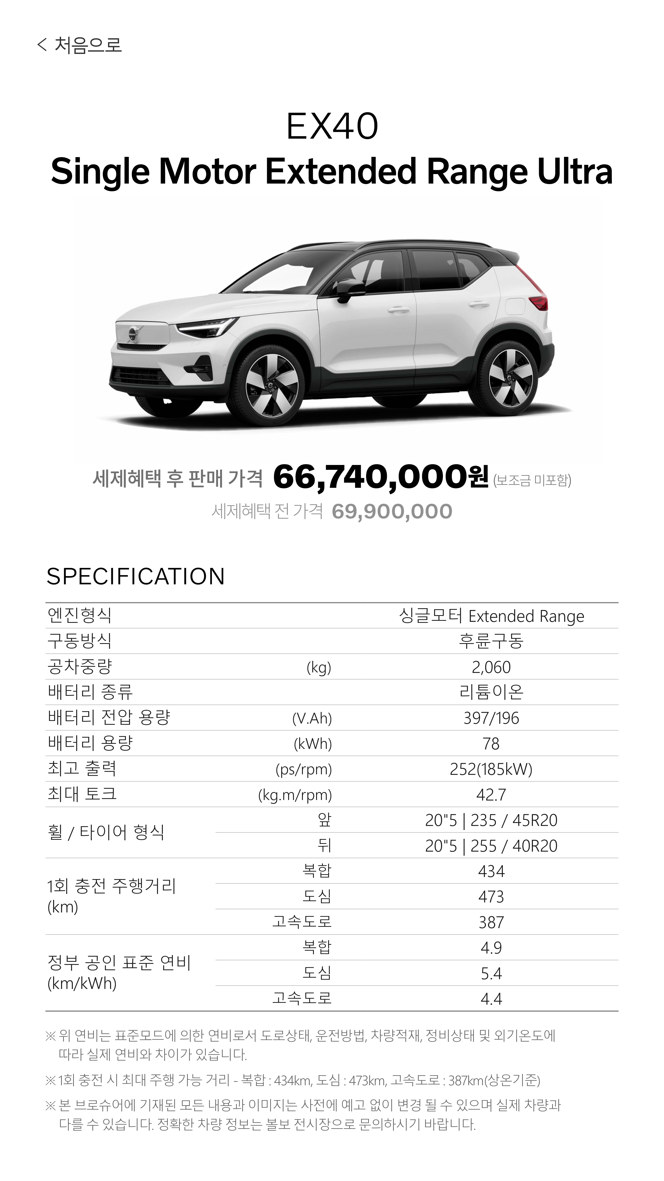 2025 볼보 EX40 울트라 가격 : 6,674 만원