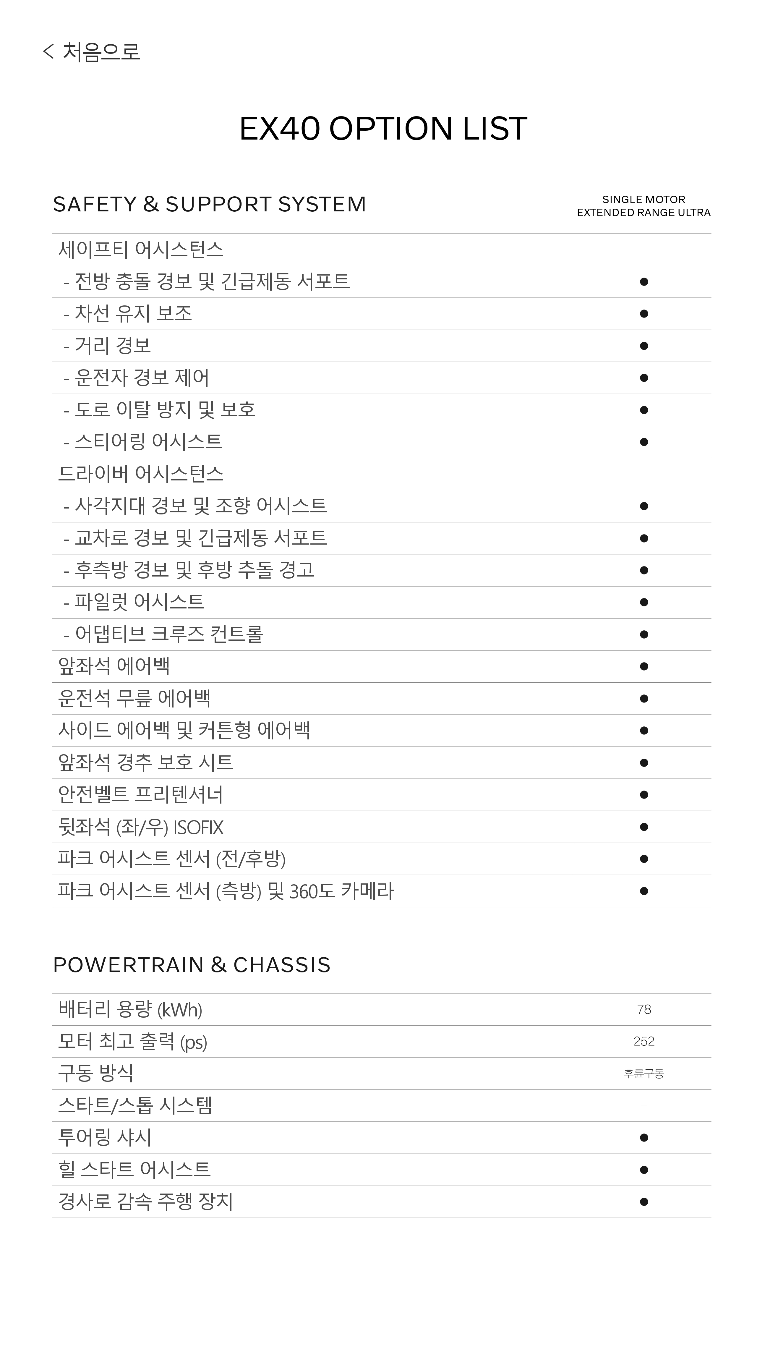 앞서 말씀드린 것처럼 오직 울트라 사양 하나만 출시되기에, 트림 간의 비교는 의미가 없고, 어느 정도의 옵션을 갖추고 있는지 참고 정도로 보시면 되겠습니다.