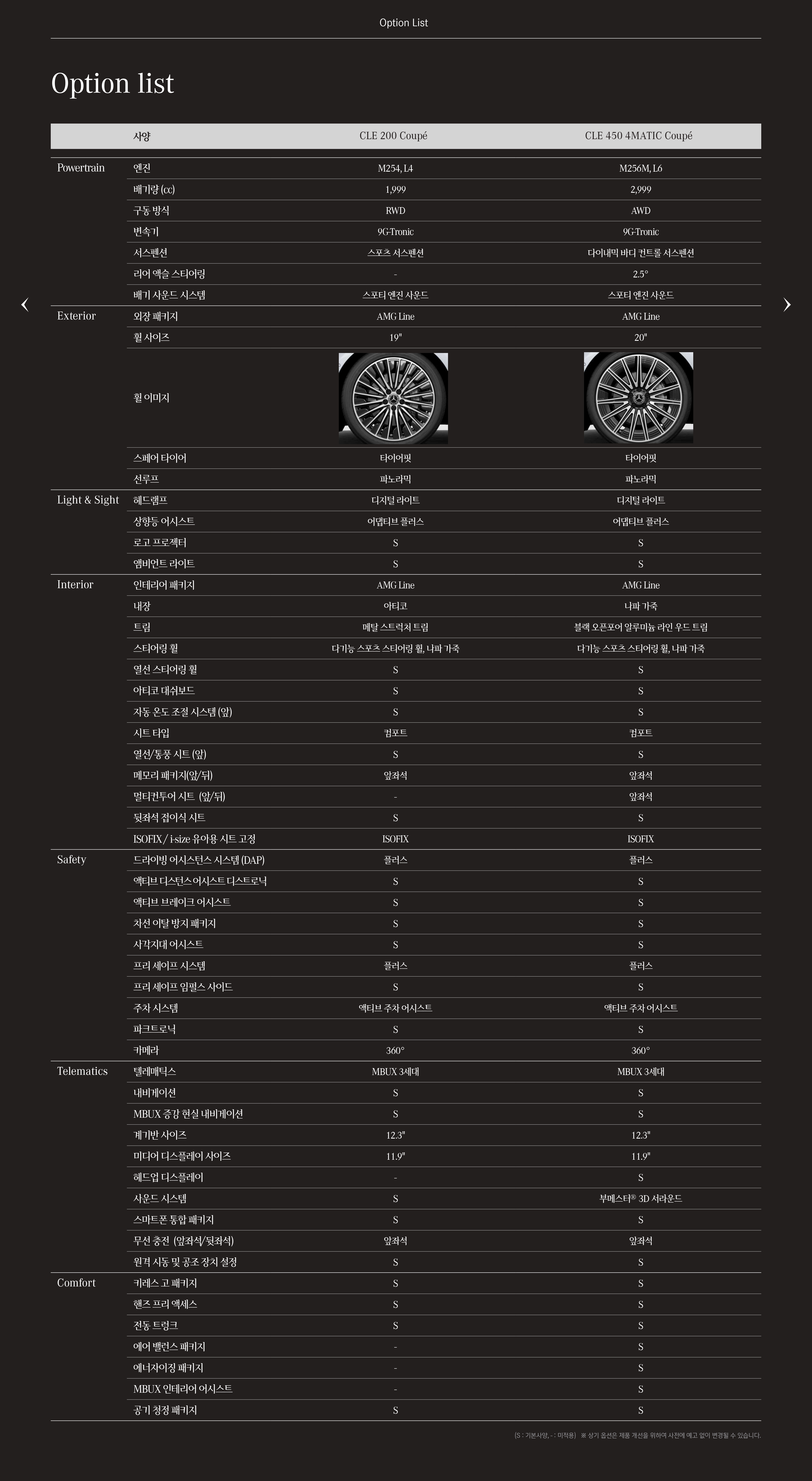 ▼ 2025 CLE 쿠페 옵션표 ▼
