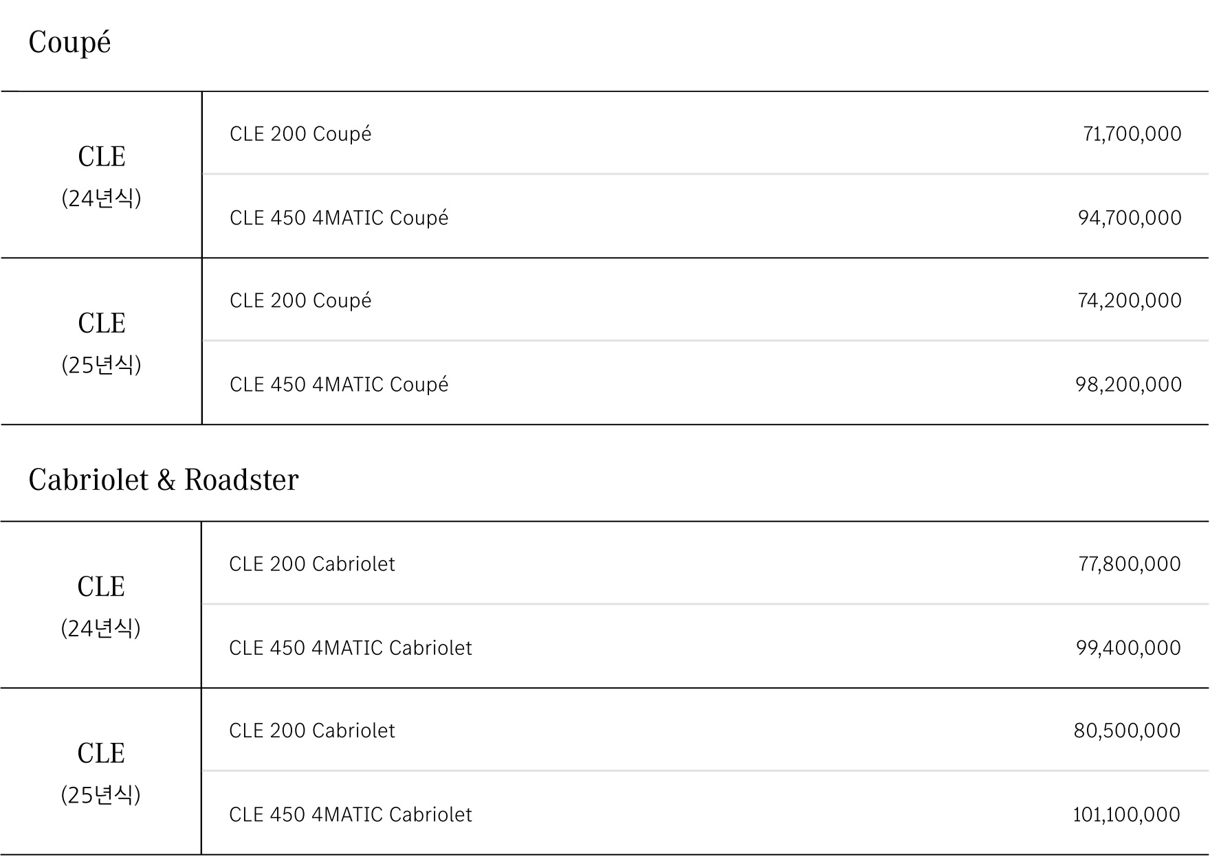 ▼ 2025 벤츠 CLE 쿠페 / 카브리올레 가격표 ▼