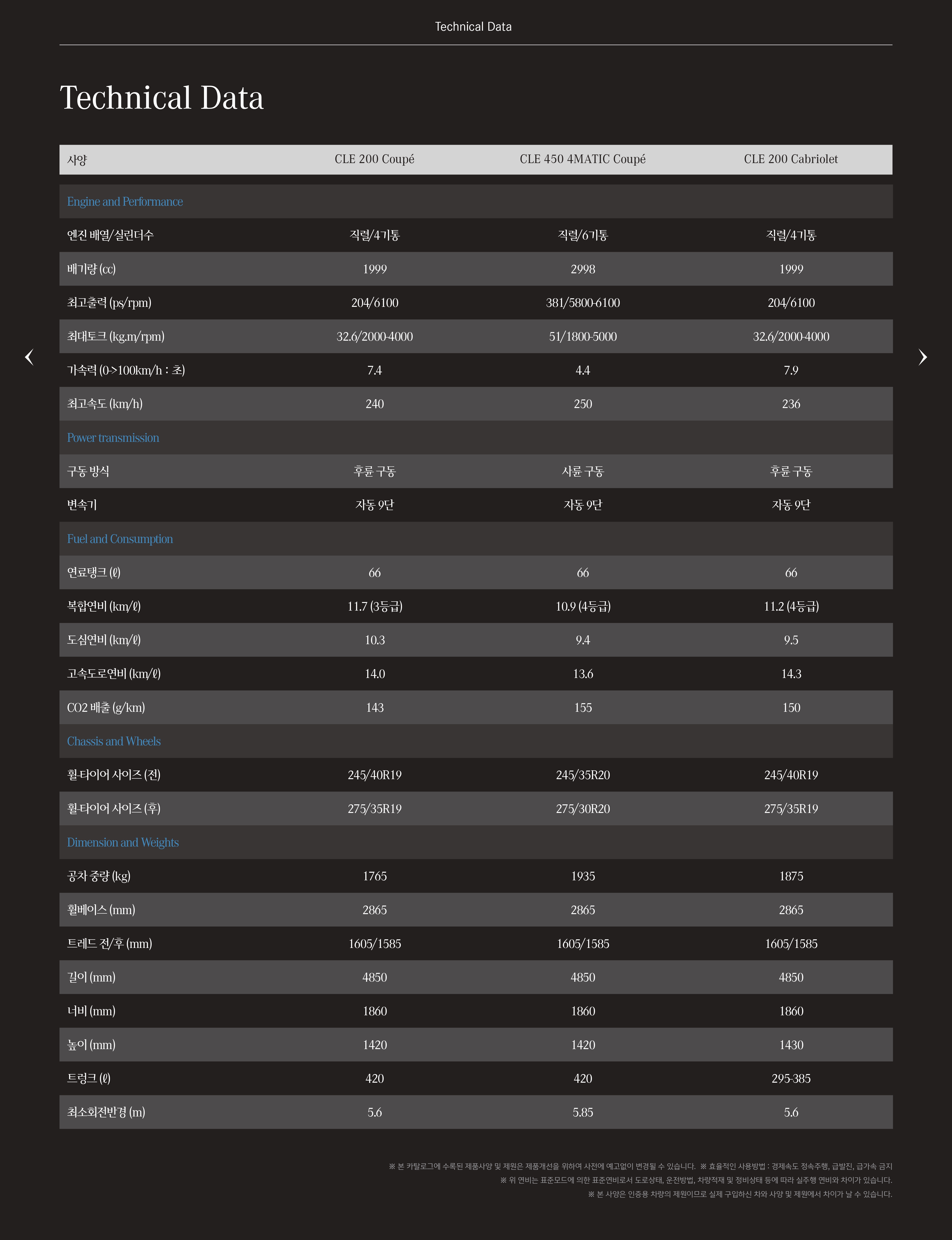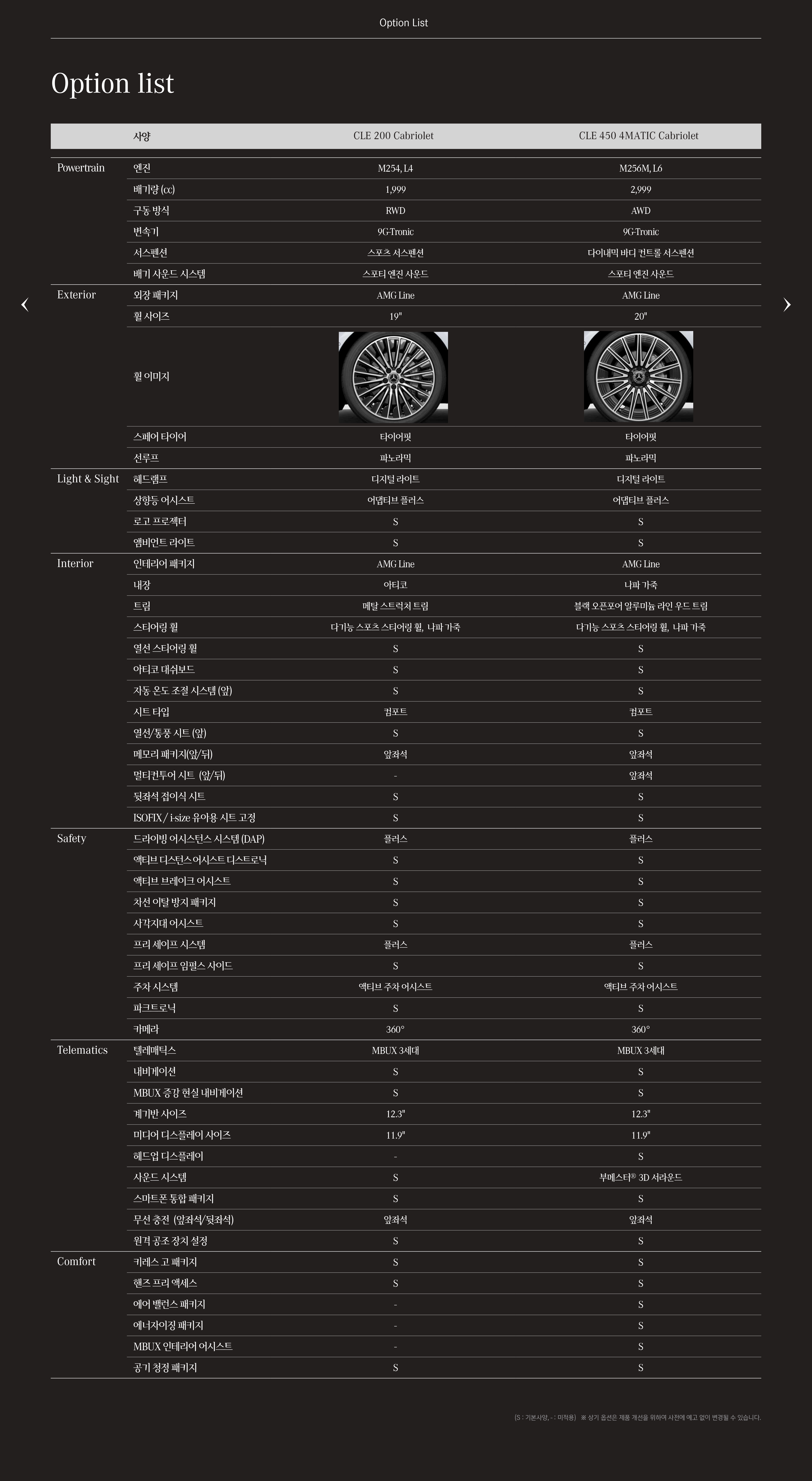한 가지 안타까운 건 가장 최근 출시한 CLE450 카브리올레 스펙은 아직 업데이트가 안되었다는 점이고요.