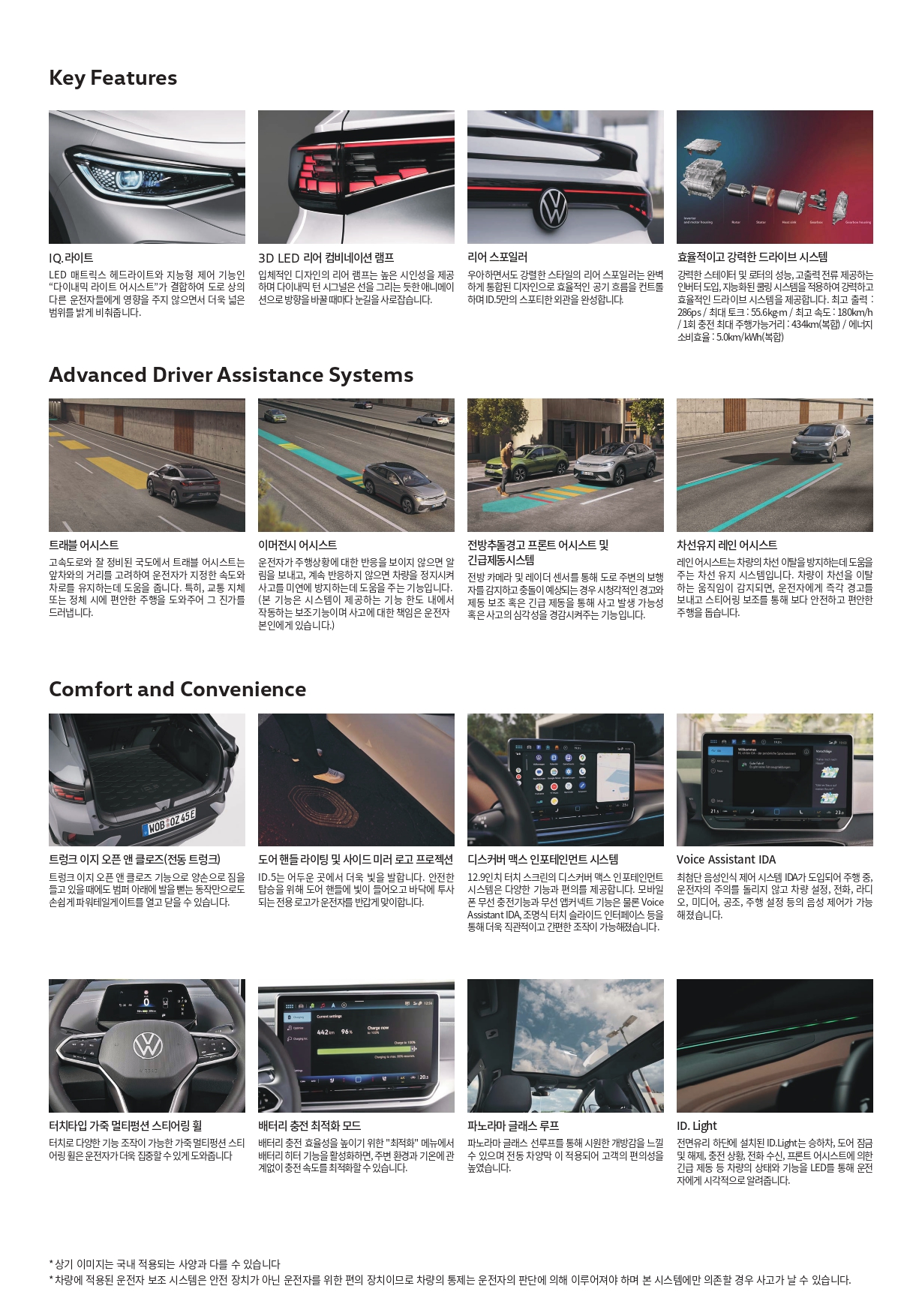 다음은 ID5 주요 옵션 내역인데, 사실 ID4 프로와 탑재되는 옵션마저 동일합니다.
