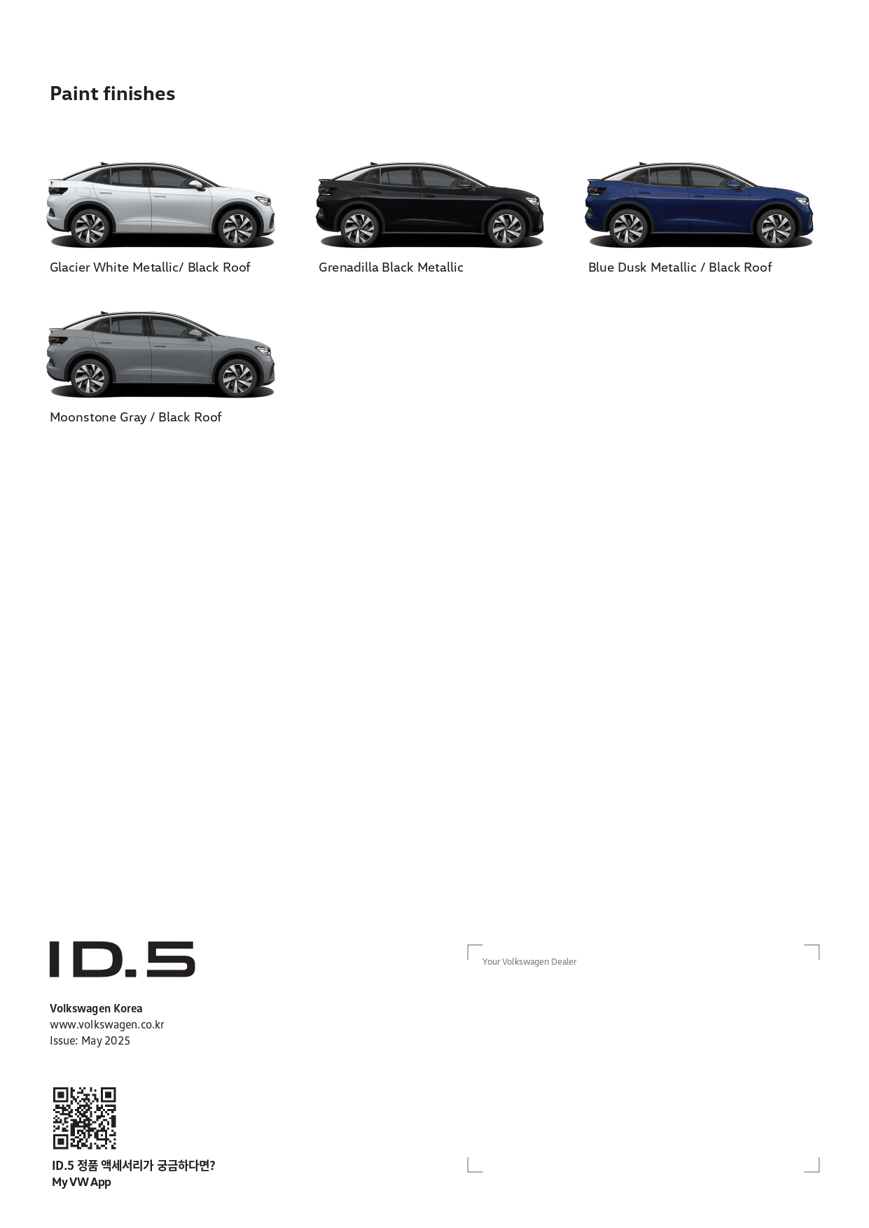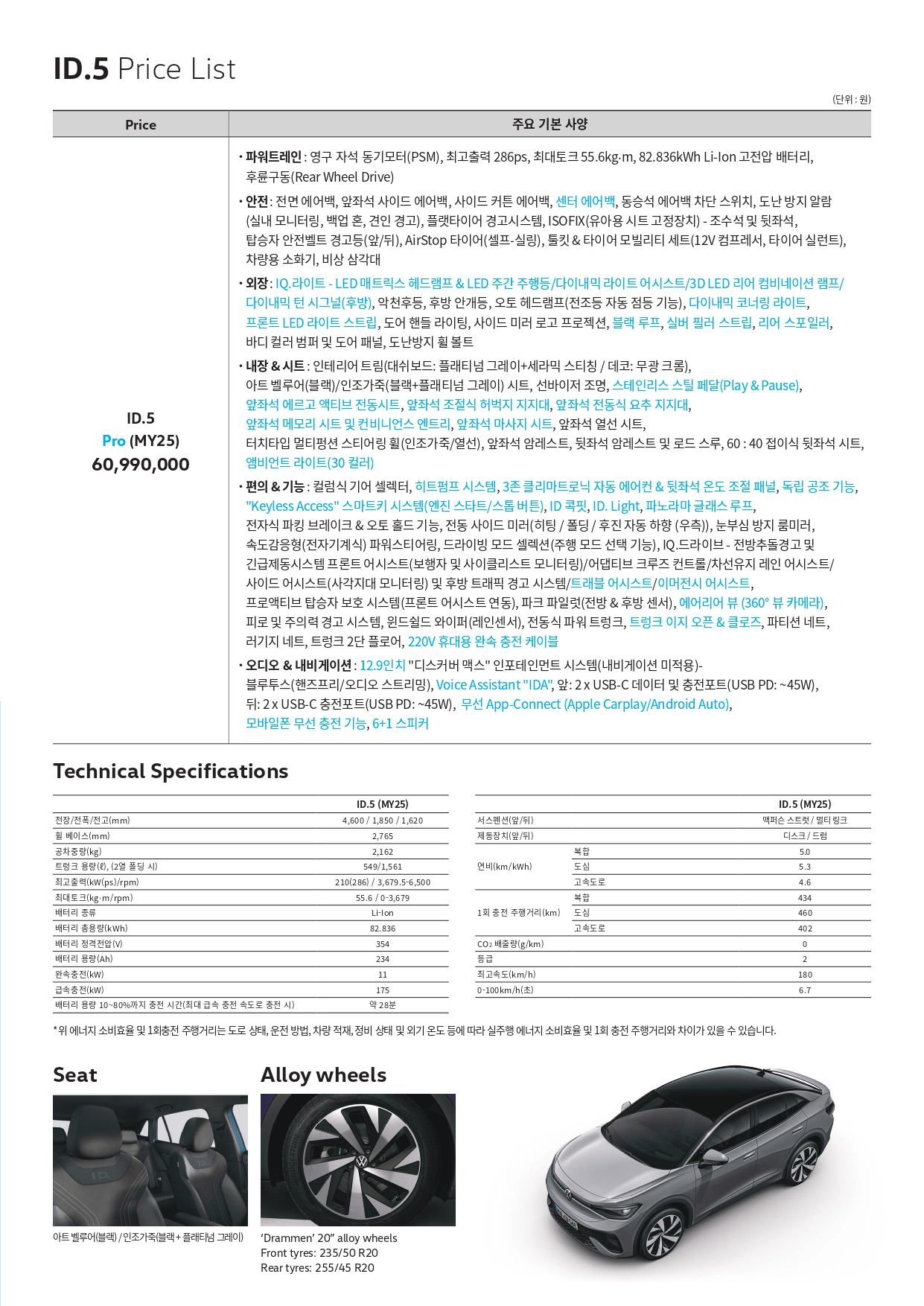 아래는 폭스바겐 ID5 카탈로그 인데, 오늘 제가 말씀드린 내용 및 사진 대부분이 여기에 있습니다.