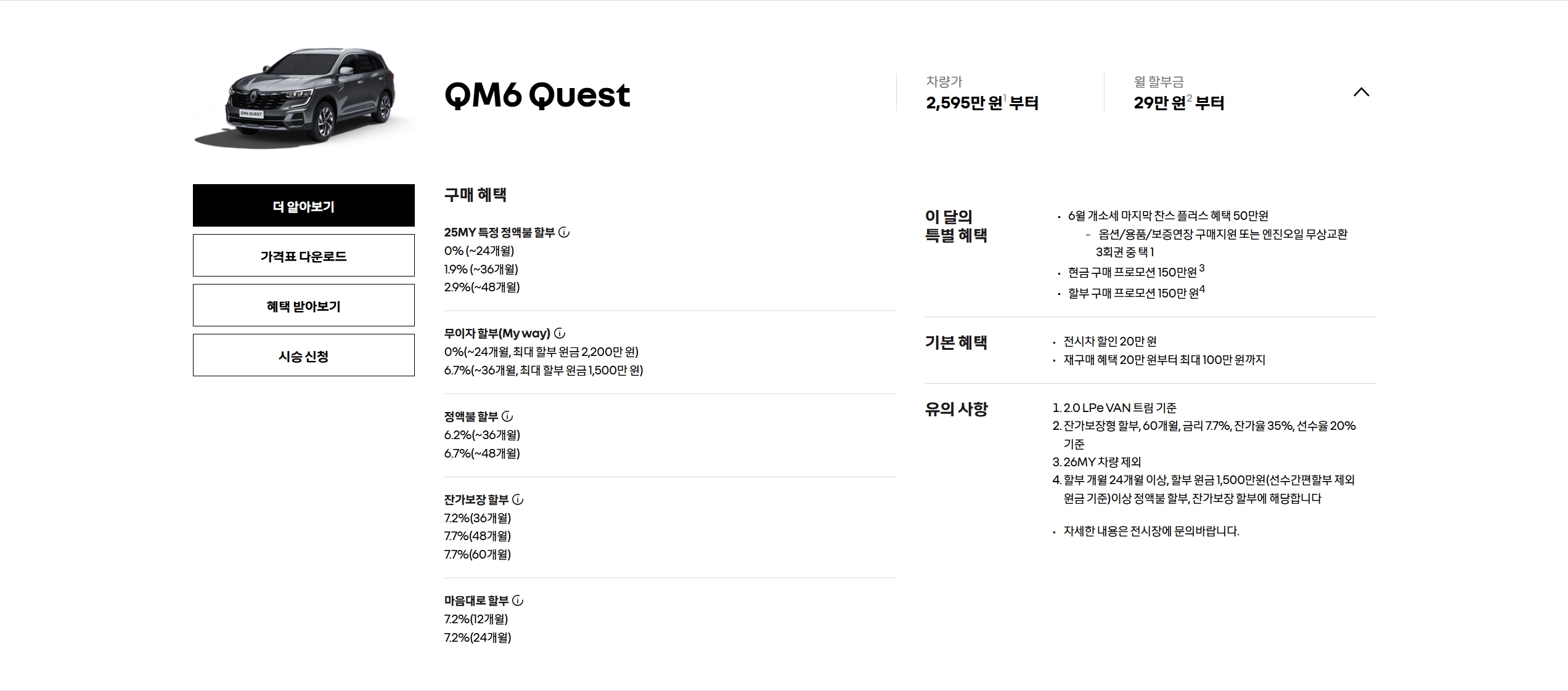 참고로! QM6 밴 모델인 퀘스트는 한정 차량 특별 할인 없는 점도 감안 부탁드립니다.