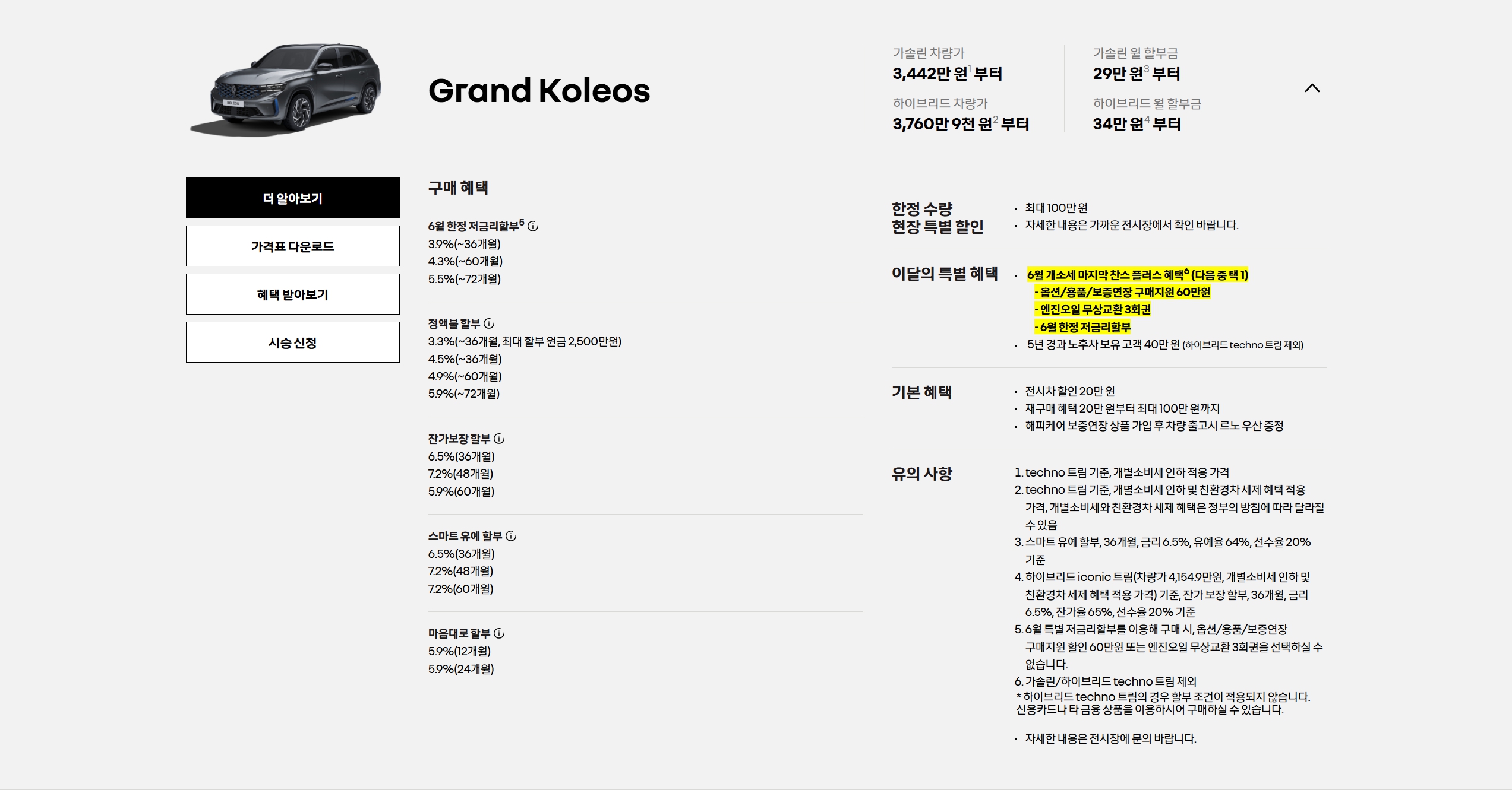 그랑 콜레오스 할인 및 가격표