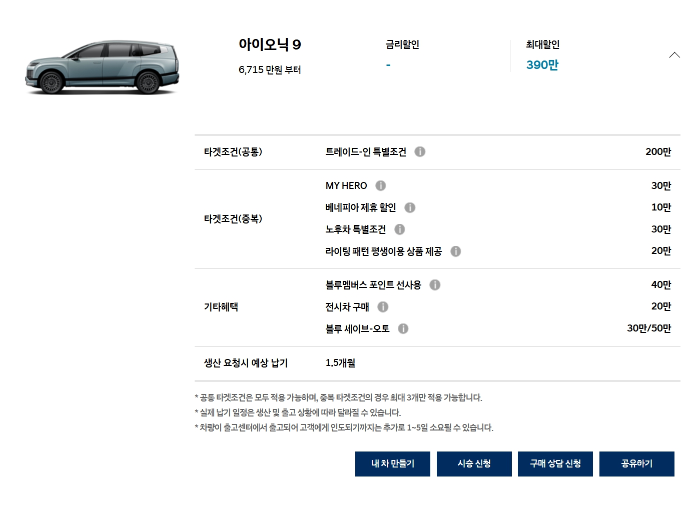 실제로 납기도 1.5개월인데, 이 정도면 SUV에서는 팰리세이드 제외하고 가장 긴 수준입니다.