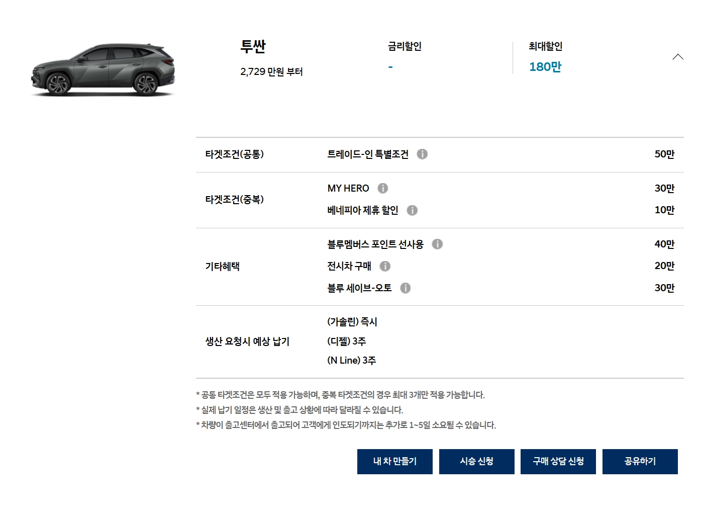 프로모션이 없어도 꾸준히 인기가 있는 차량이라, 별도 프로모션이 없습니다.