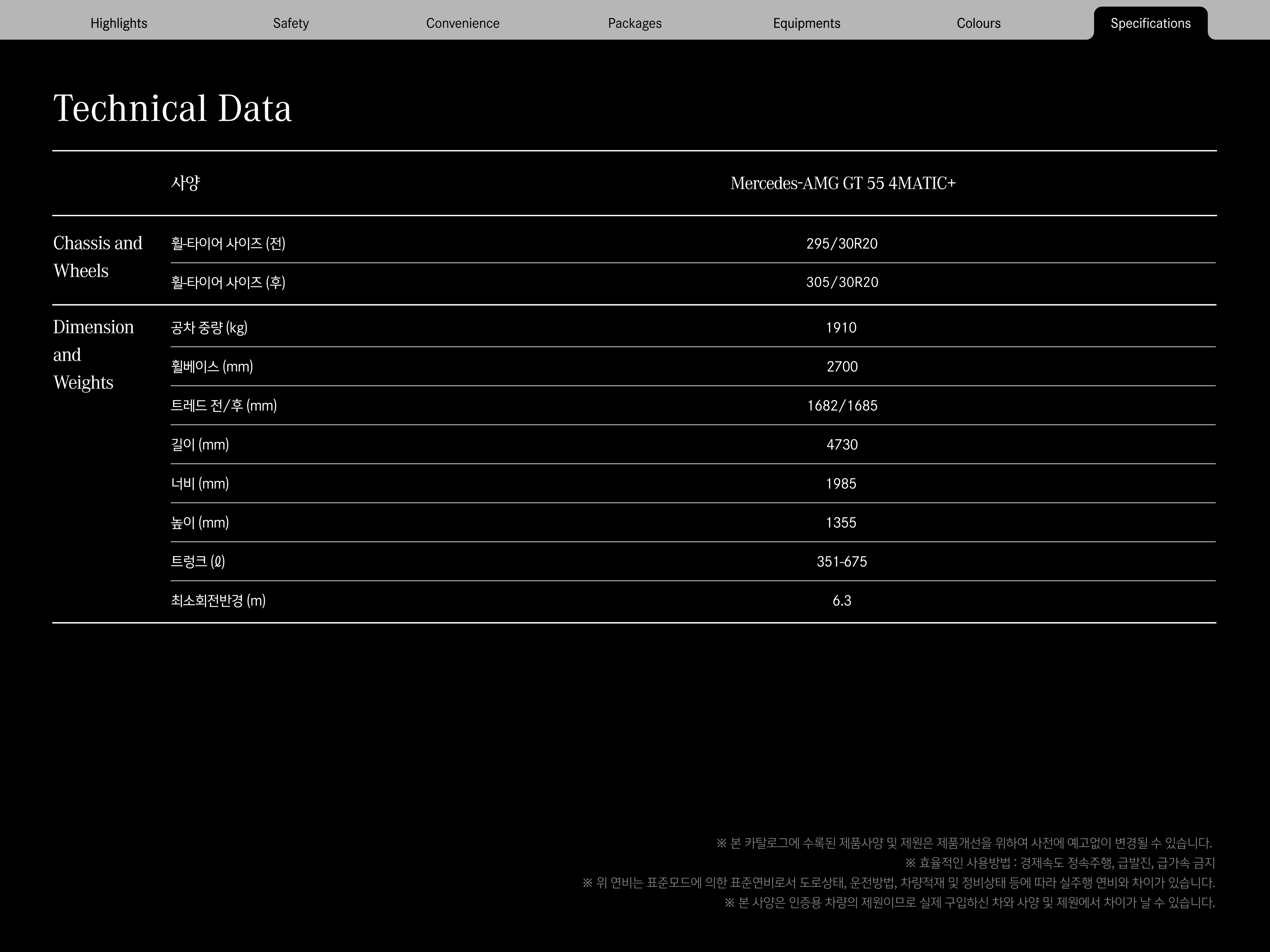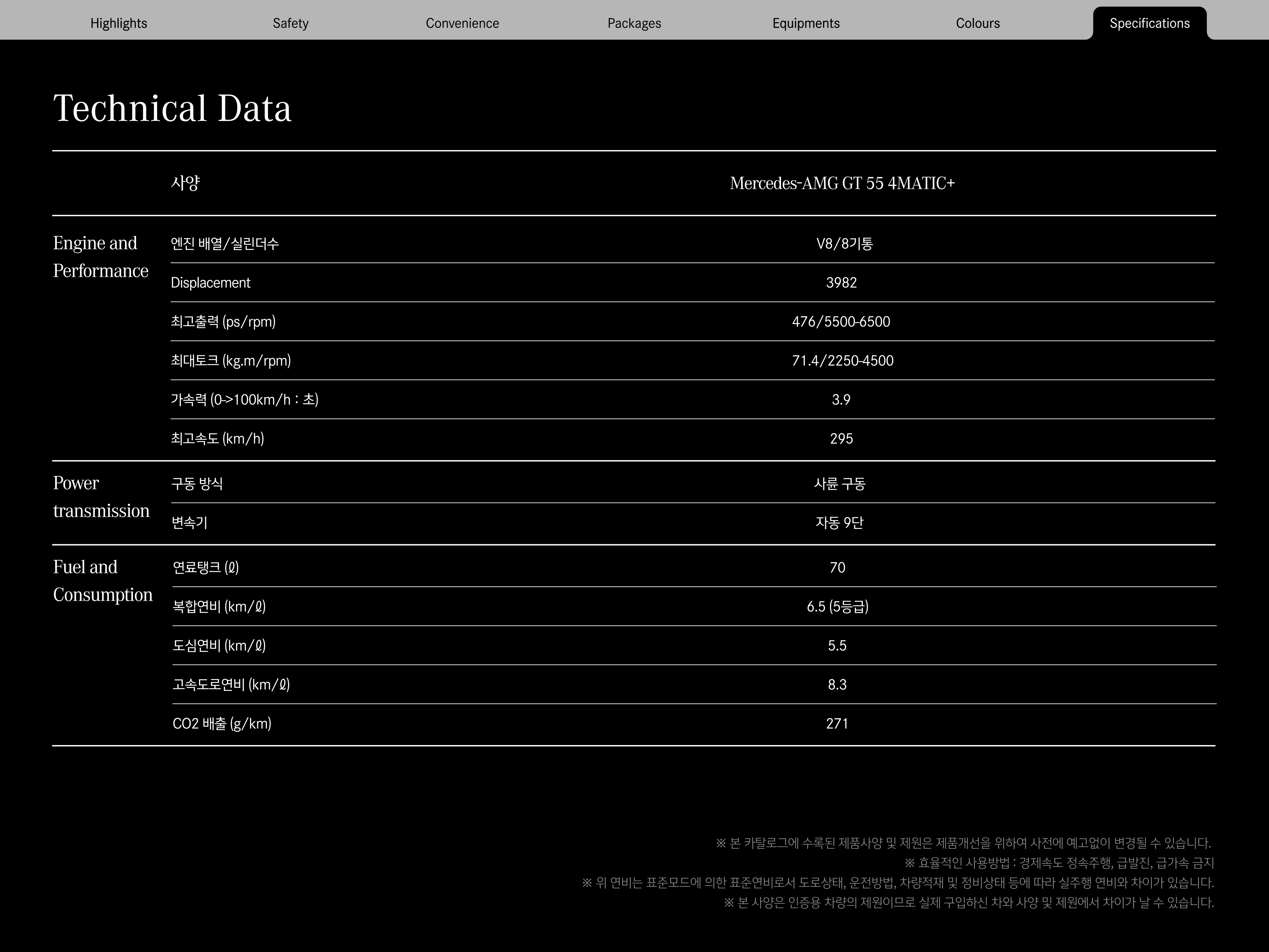 마지막으로 AMG GT55 제원입니다.