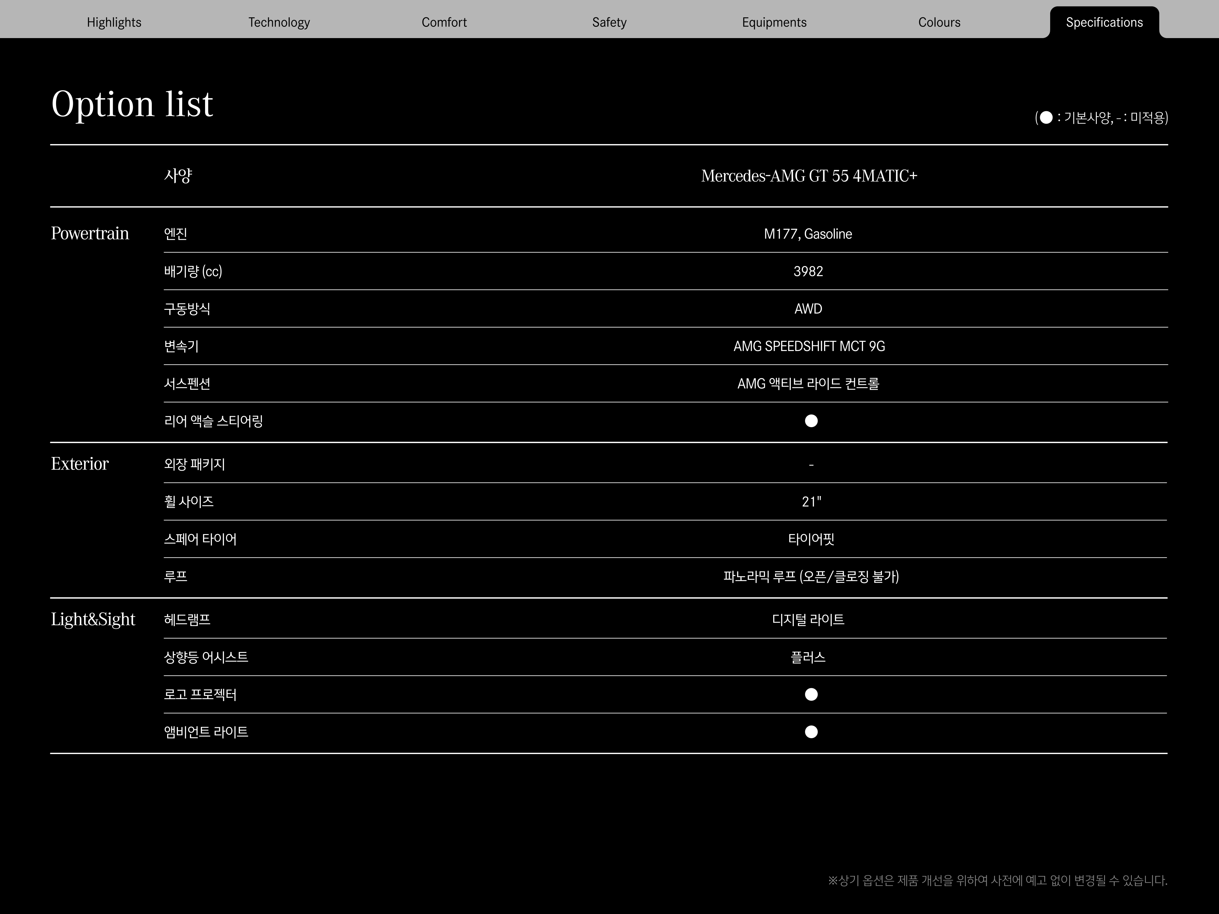 ▼ 2025 AMG GT 55 옵션표 ▼