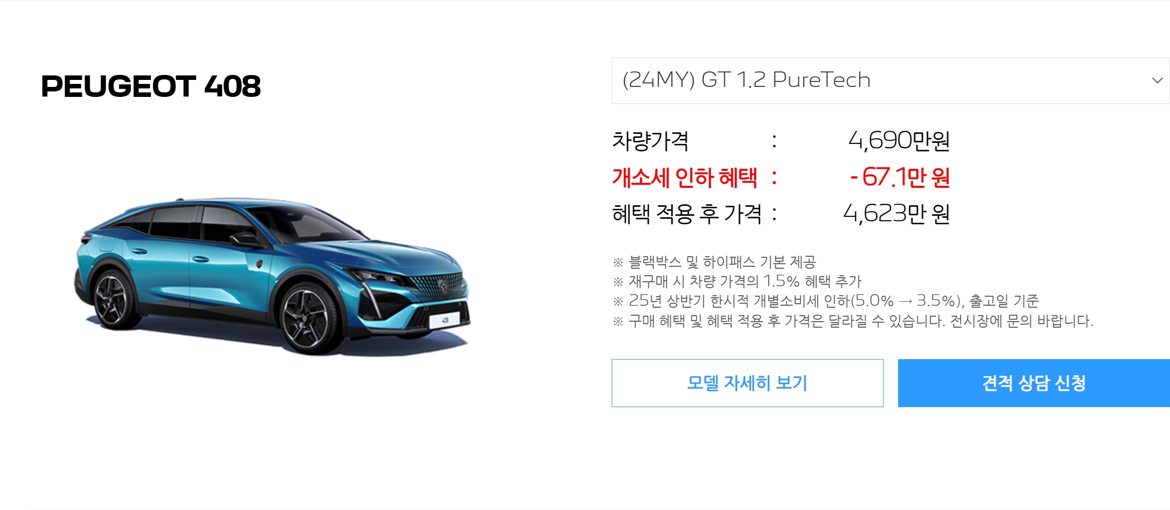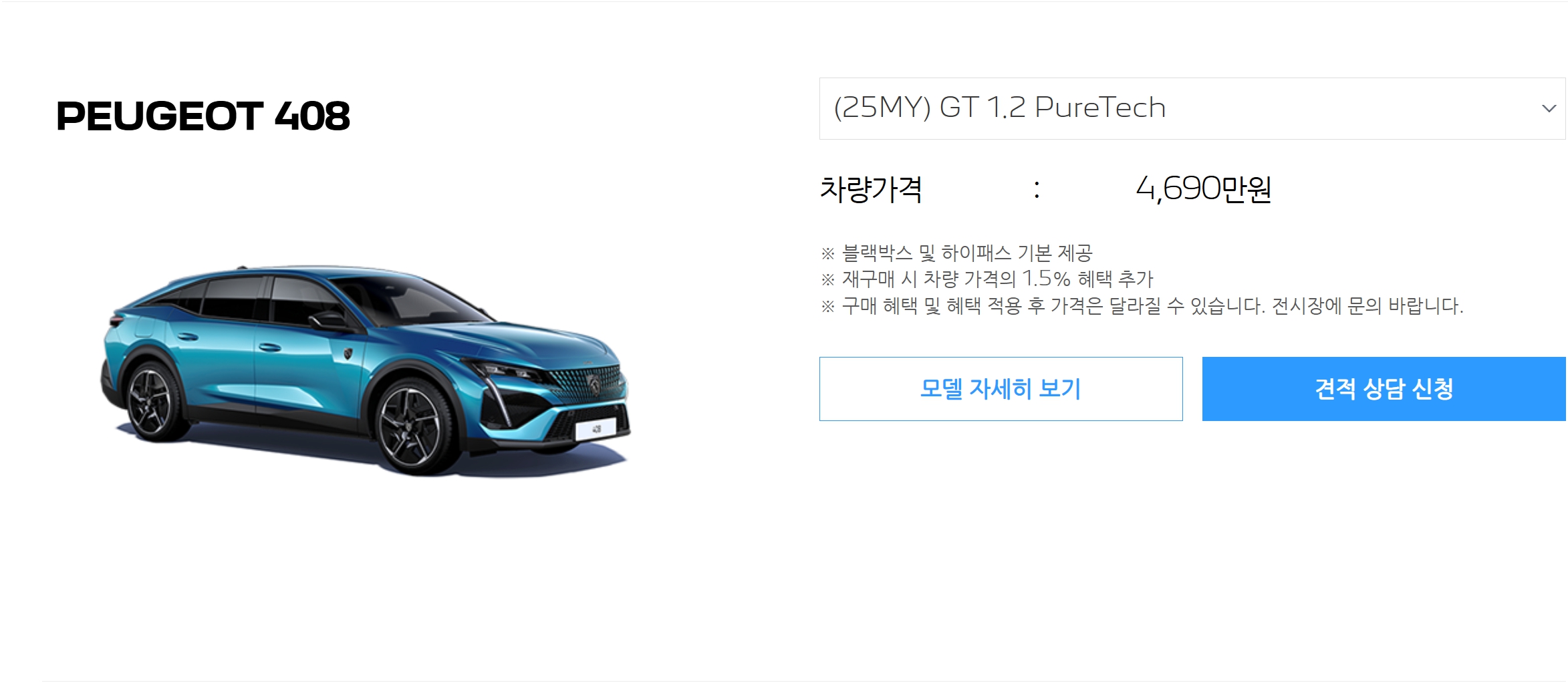 푸조 308은 25년형 출시된 지 얼마 지나지 않아, 원래 프로모션이 없는 차종이었고요.