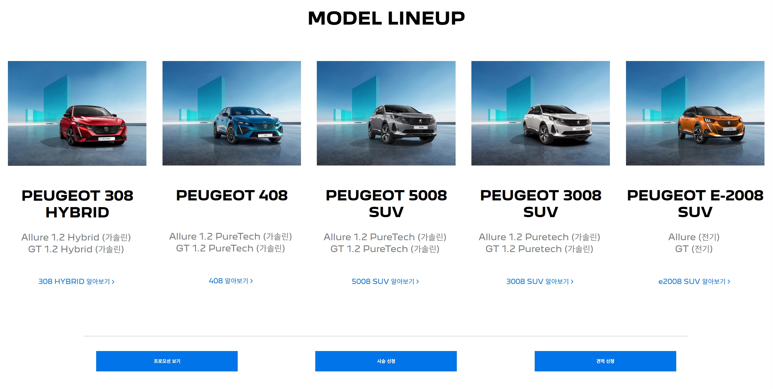 그리고, 오늘 프로모션을 소개해 드리지 못한 나머지 차종은 푸조 308과 푸조 e-2008 두 차종입니다.