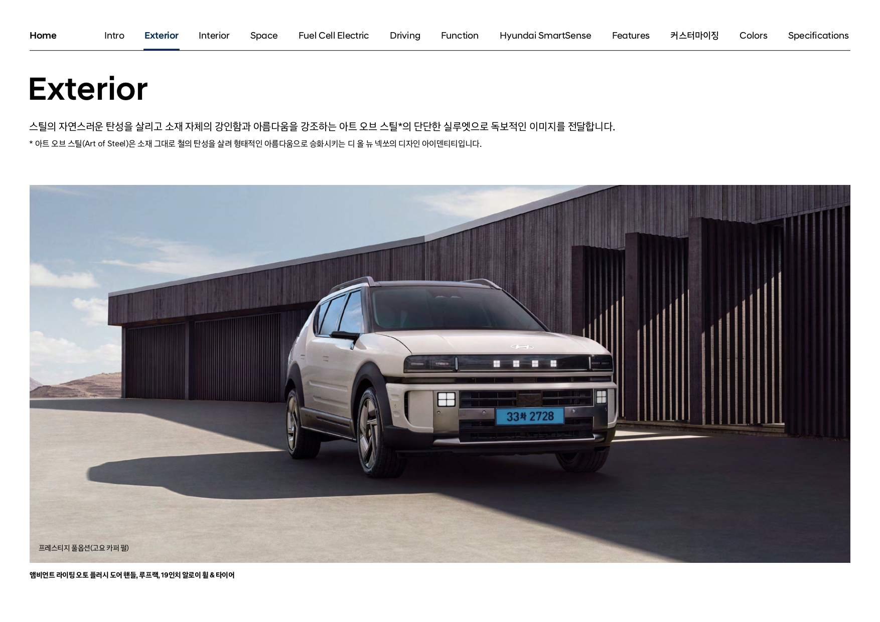우선, 외부 디자인이 기존에 나온 현대차에서 볼 수 없는 디자인인데, 이는 새롭게 적용된 아트 오브 스틸이라는 디자인 언어 때문입니다.