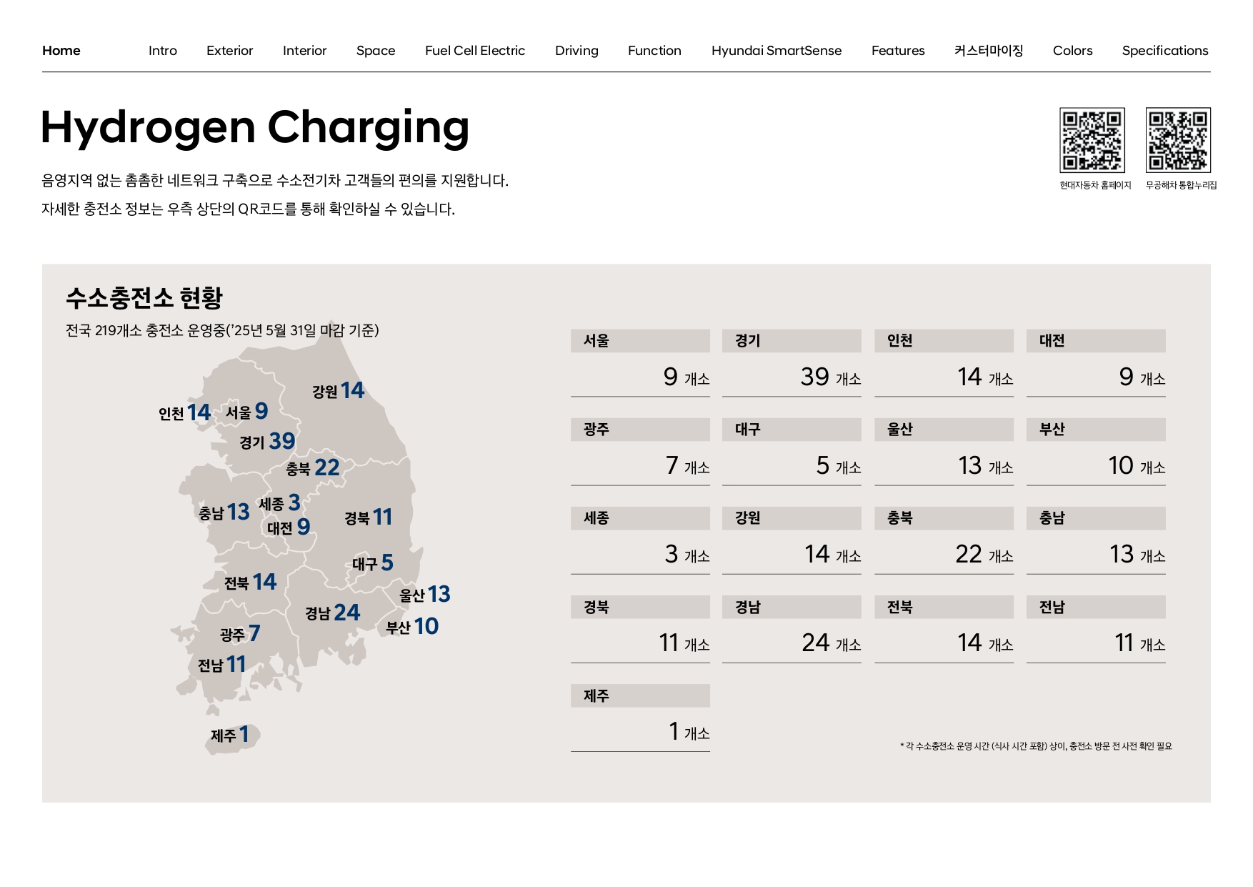 넥쏘는 타 전기차와는 달리, 내 주변에 수소 충전소 인프라가 있느냐 없느냐에 따라 차량 유지도의 난이도가 결정되기 때문에, 중요하게 잘 보셔야 합니다.