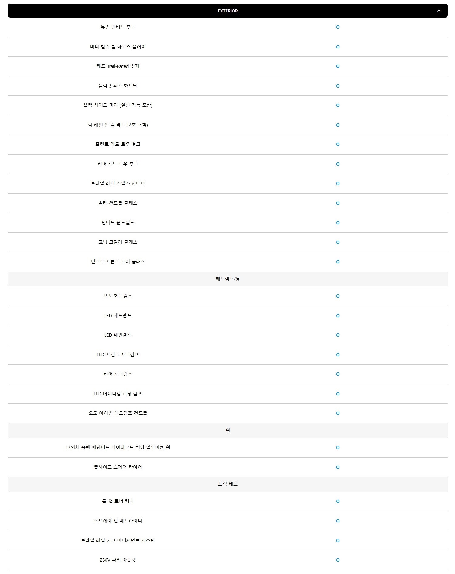 ▼ 2025 글래디에이터 옵션표 ▼