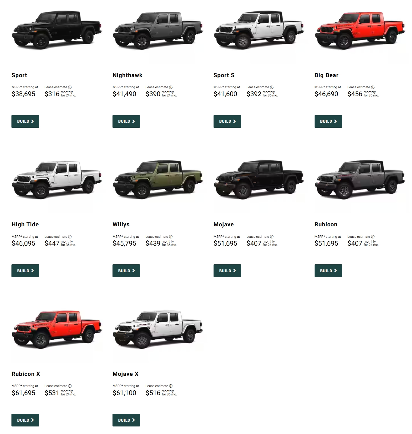 글래디에이터 가격을 보셨으니, 옵션을 한 번 살펴볼까요?
