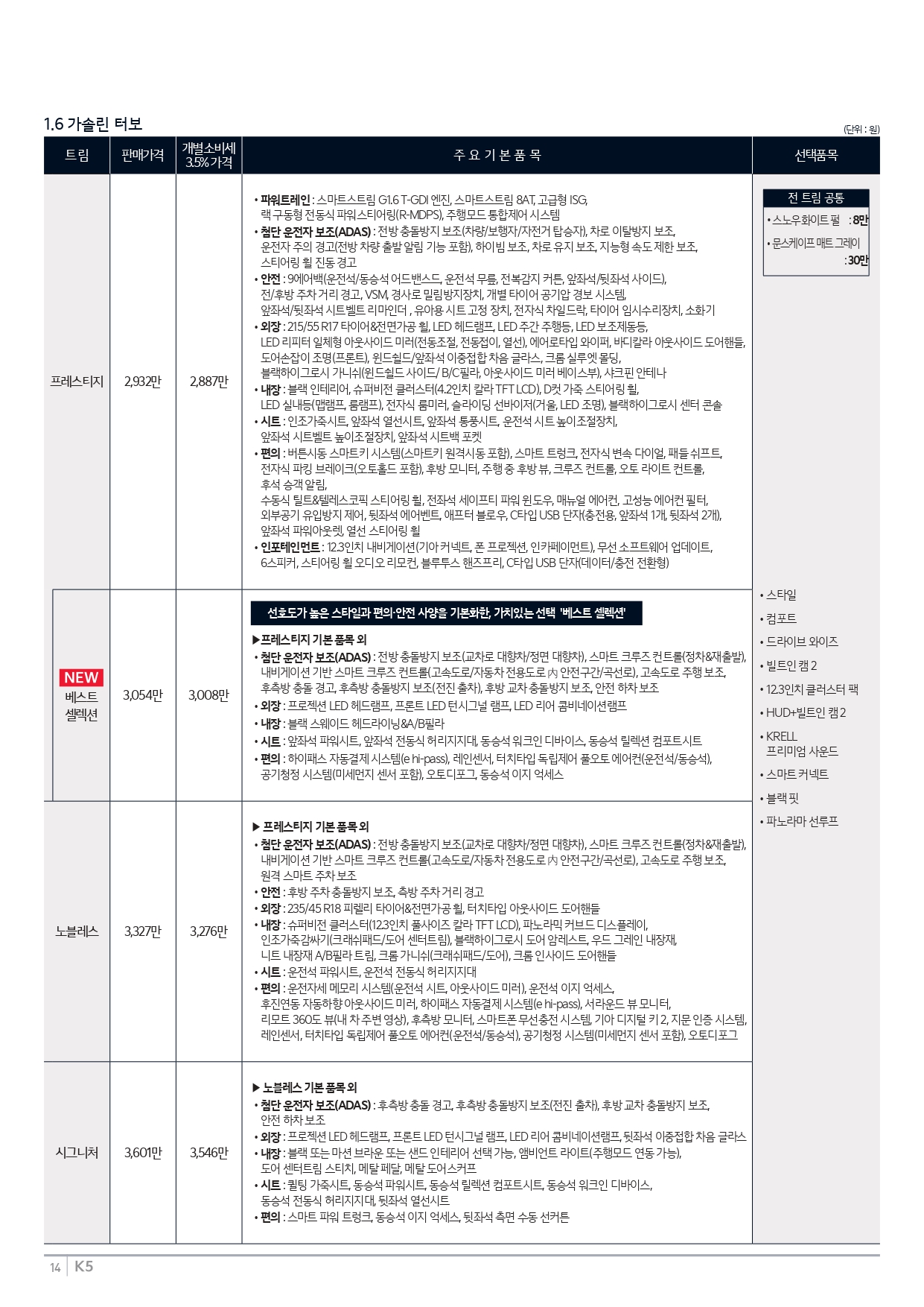 ▼ 2026 K5 1.6 터보 가격표 ▼