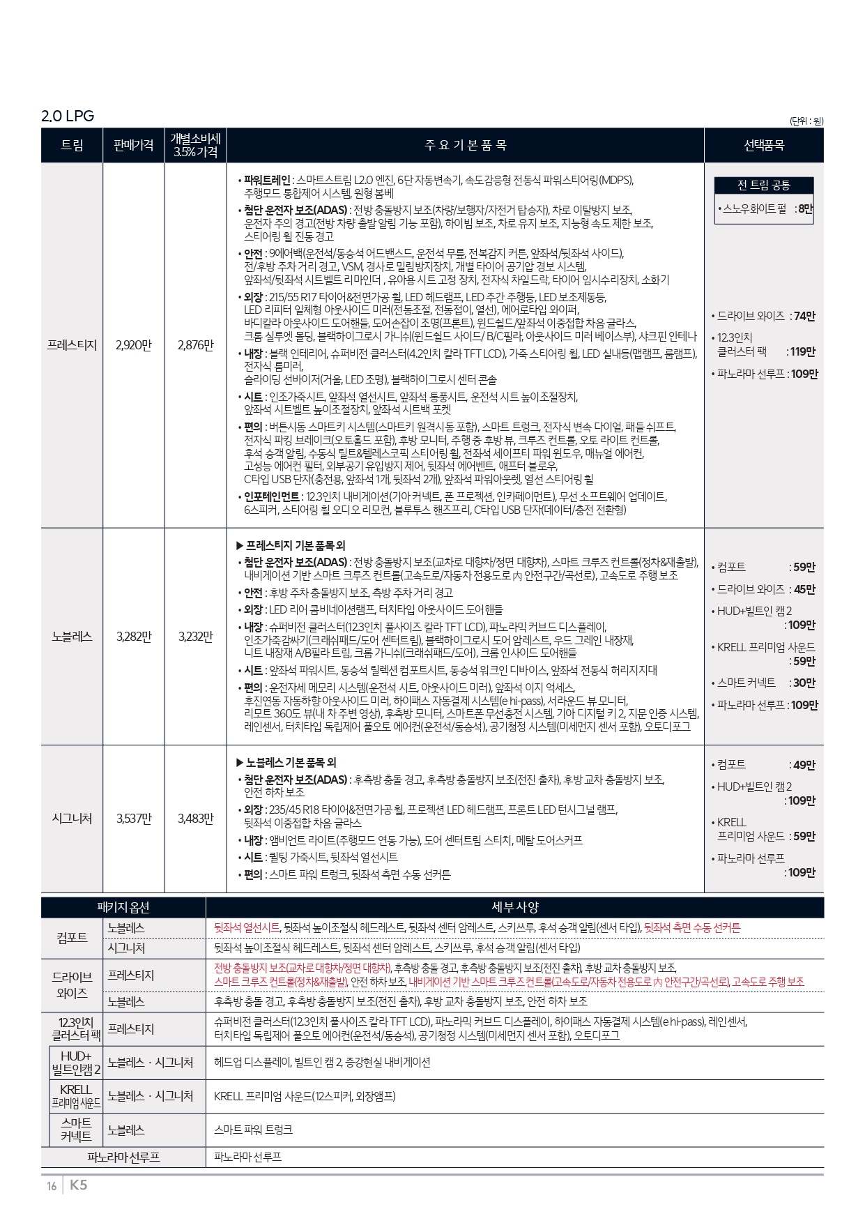 ▼ 2026 K5 LPG 가격표 ▼