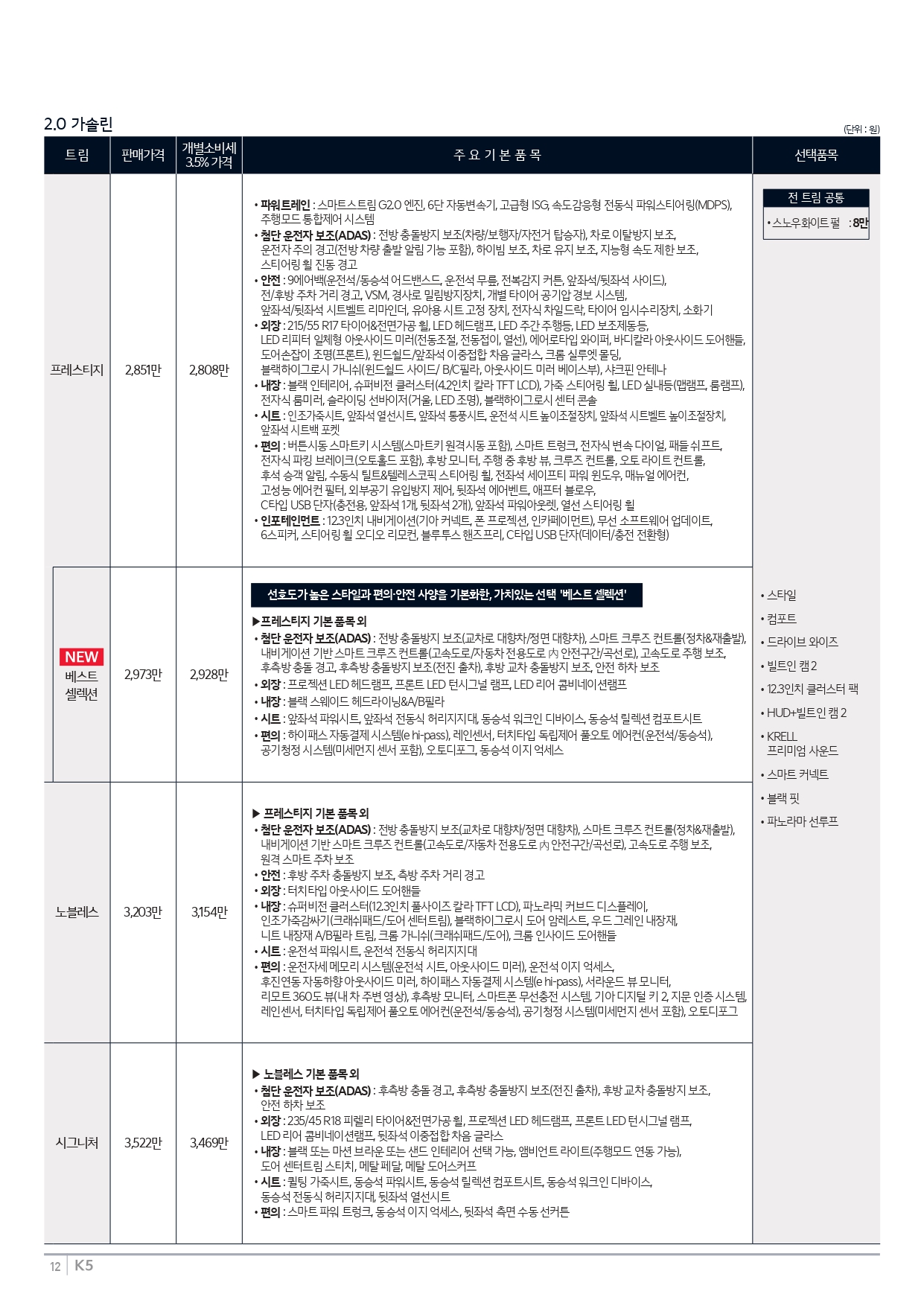 ▼ 2026 K5 2.0 가격표 ▼