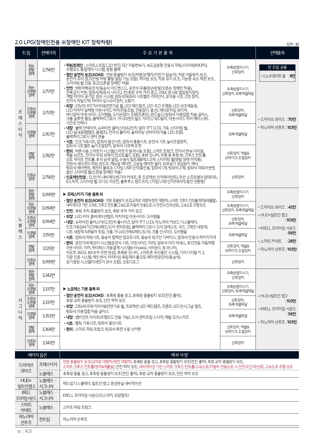 ▼ 2026 K5 장애인용 가격표 ▼