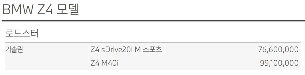 BMW Z4 가격표