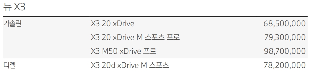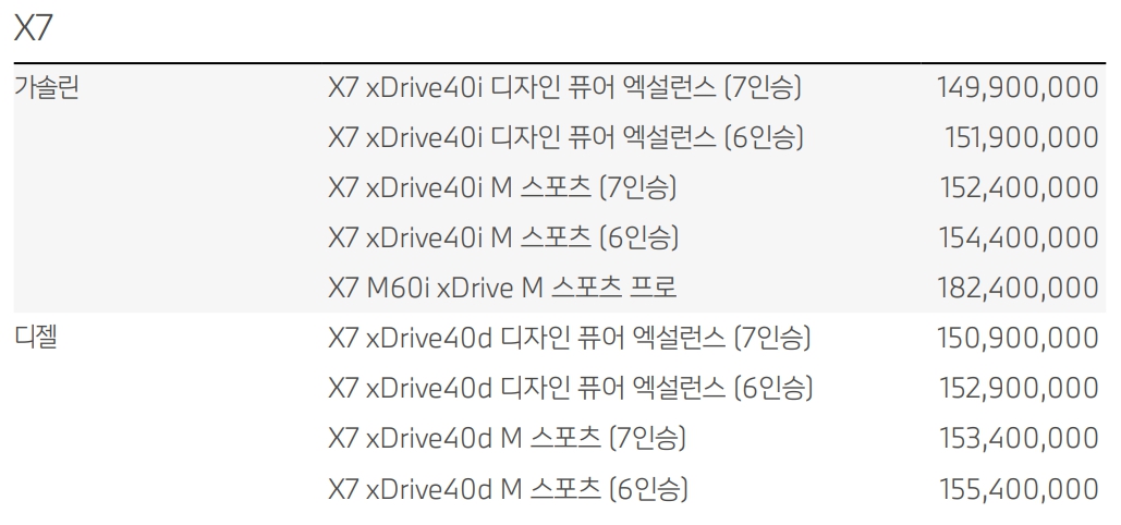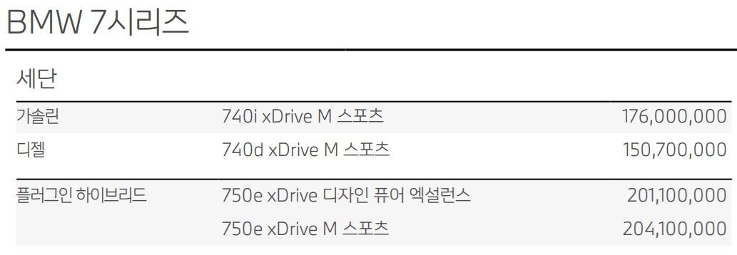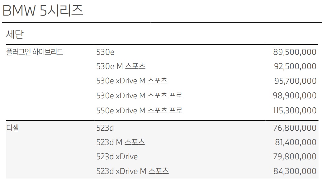 3시리즈와 비슷한데, 가솔린 모델들이 삭제가 되고, 디젤 및 PHEV는 가격이 인상되었습니다.