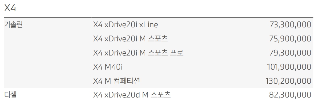 BMW X4 가격표