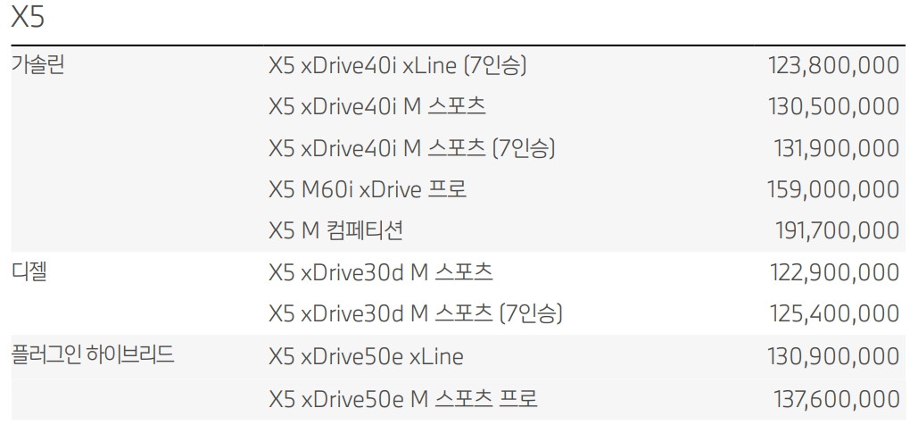 BMW X5 가격표