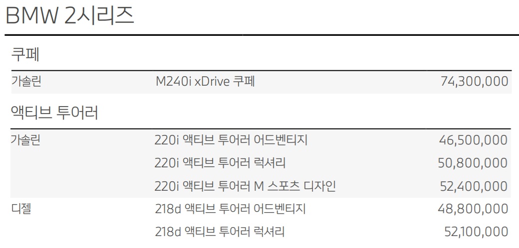 2시리즈 가격표
