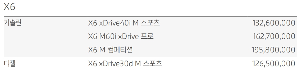 BMW X6 가격표