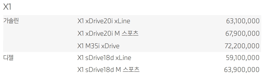 BMW X1 가격표