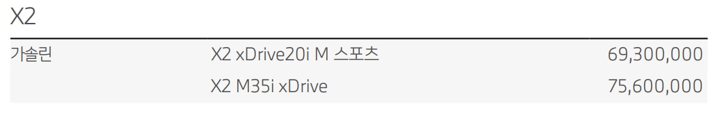 X2 xDrive20i M 스포츠 : 6,820 -> 6,930