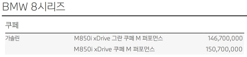 8시리즈 가격표