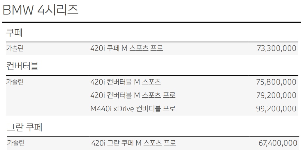 4시리즈 가격표