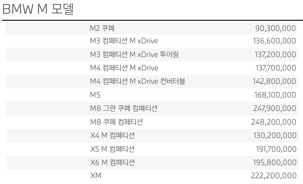 M3 컴페티션 M xDrive : 1억 3,440 -> 1억 3,660