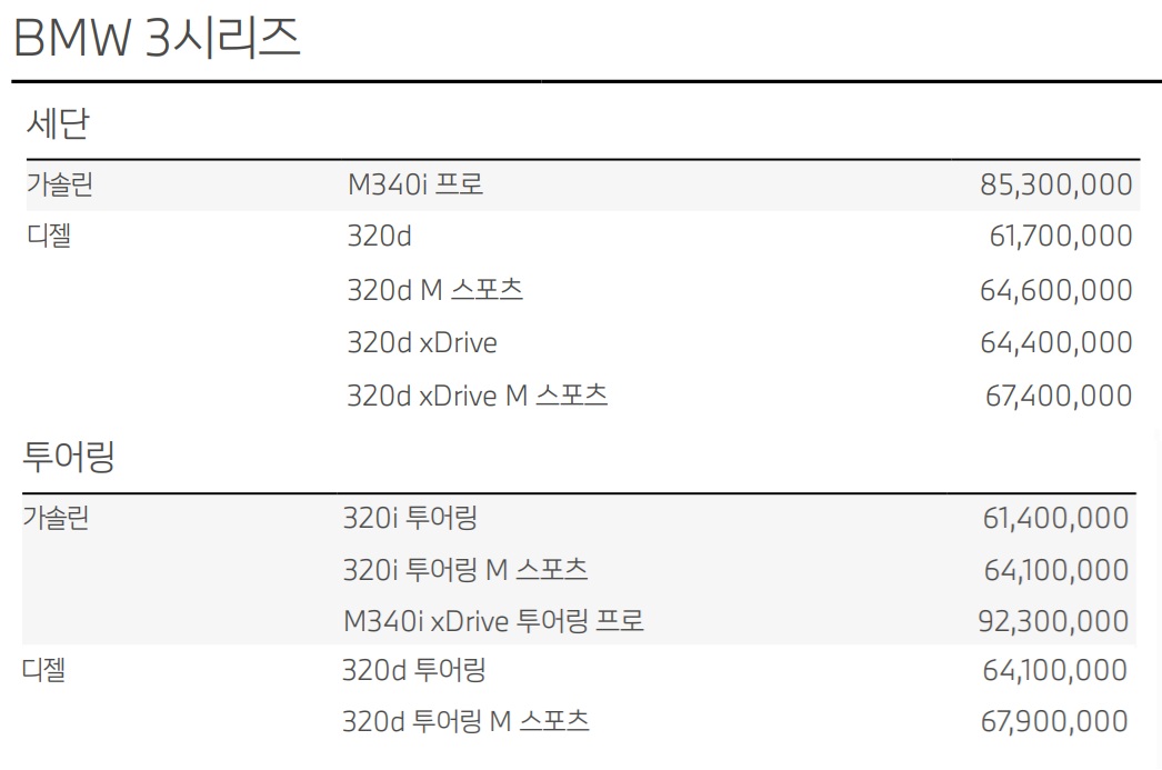 3시리즈 가격표