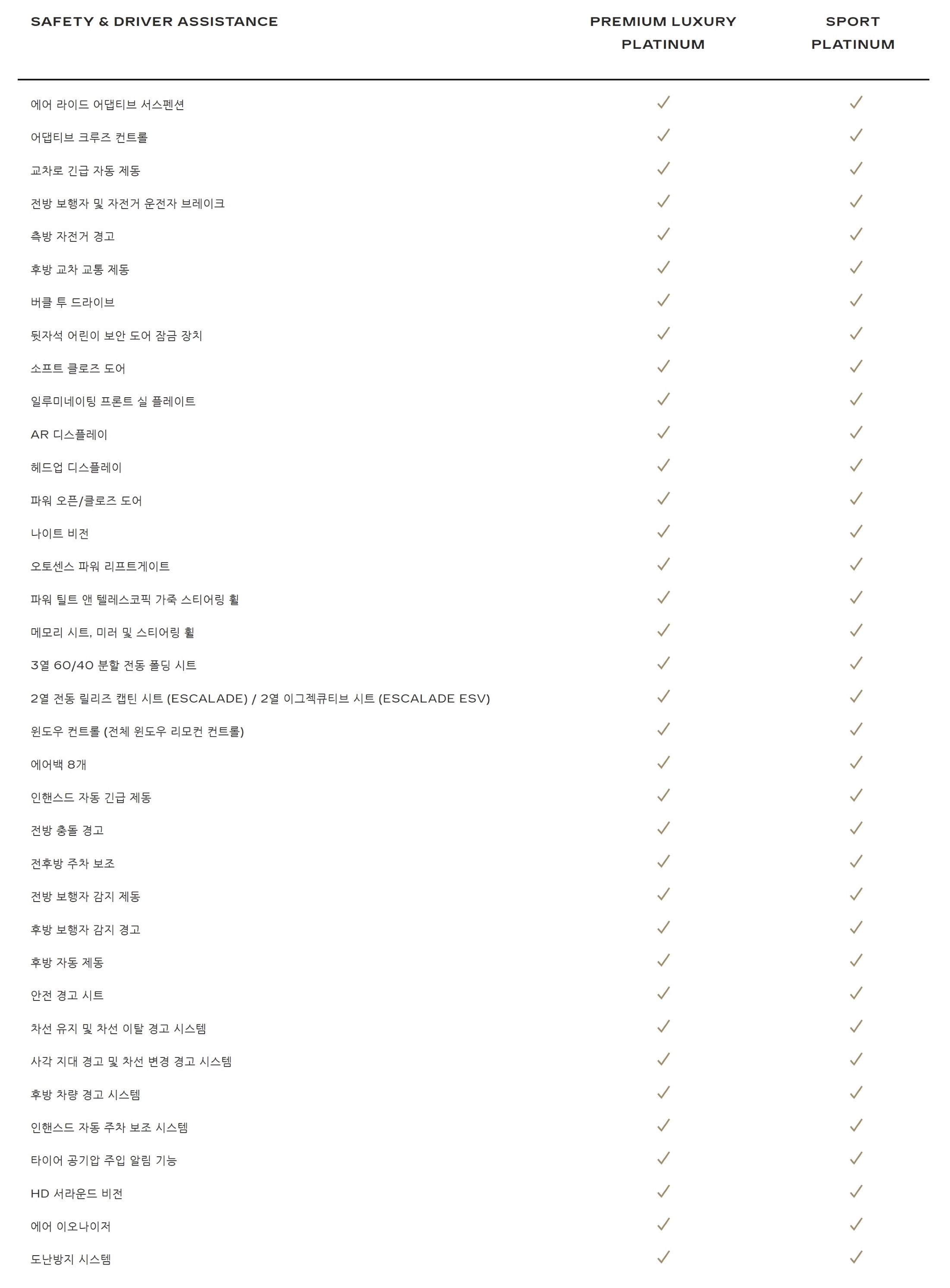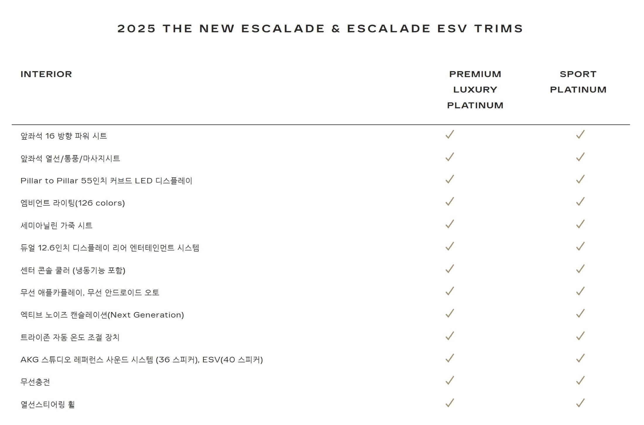 ▼ 2025 캐딜락 에스컬레이드 옵션표 ▼
