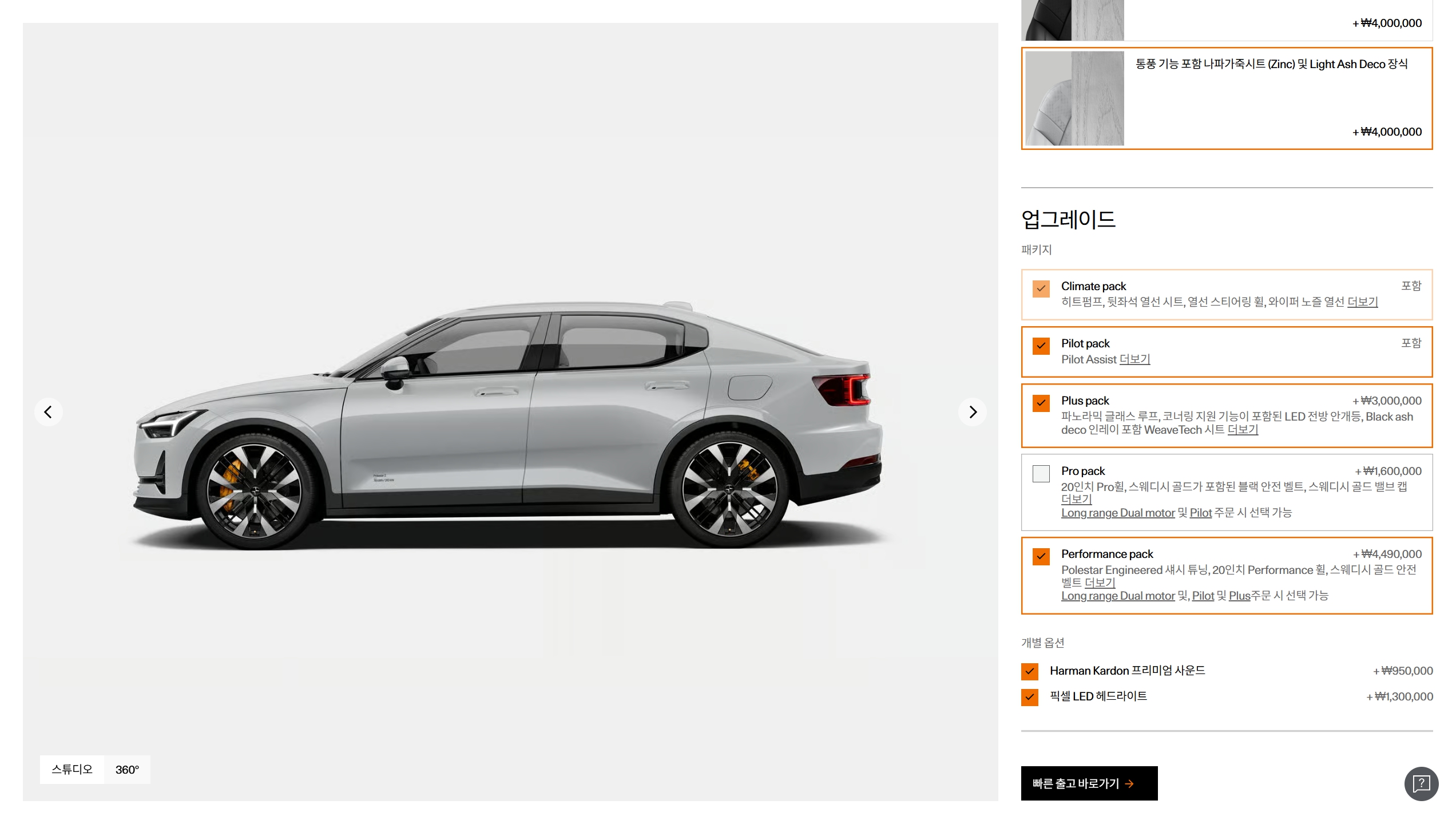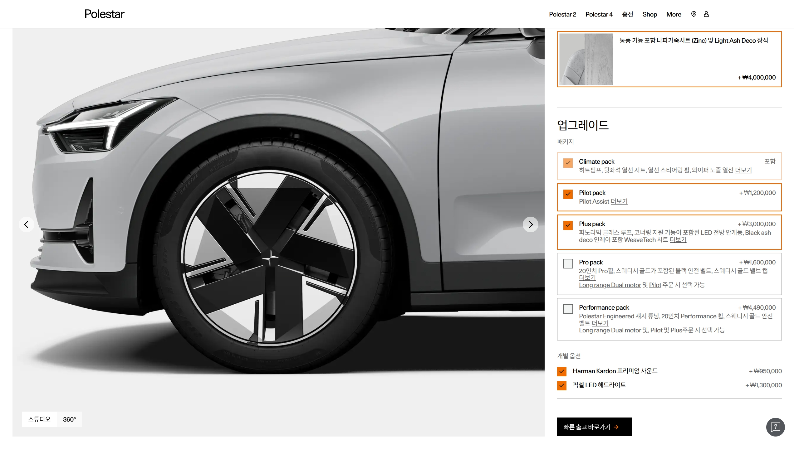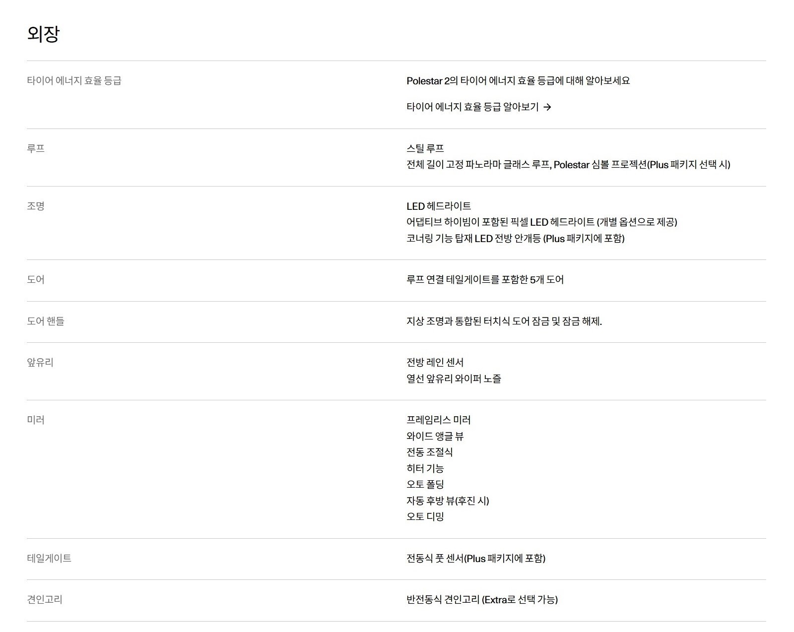 다양한 선택 옵션을 판매하는 폴스타라, 옵션 항목에서 큰 차이를 보이지는 않습니다.