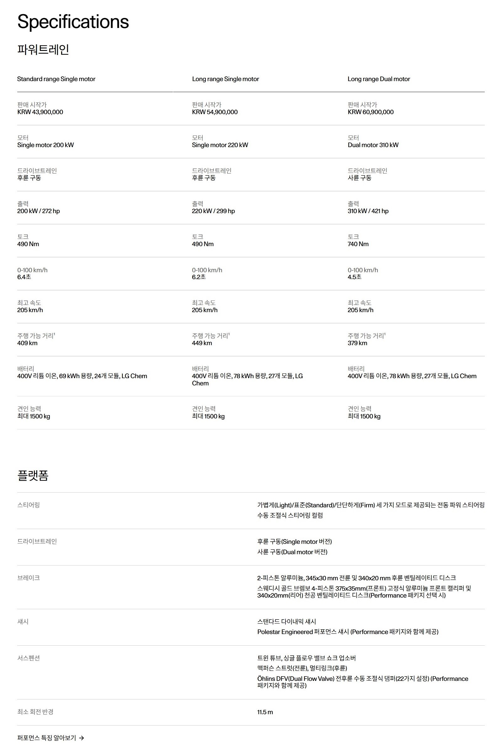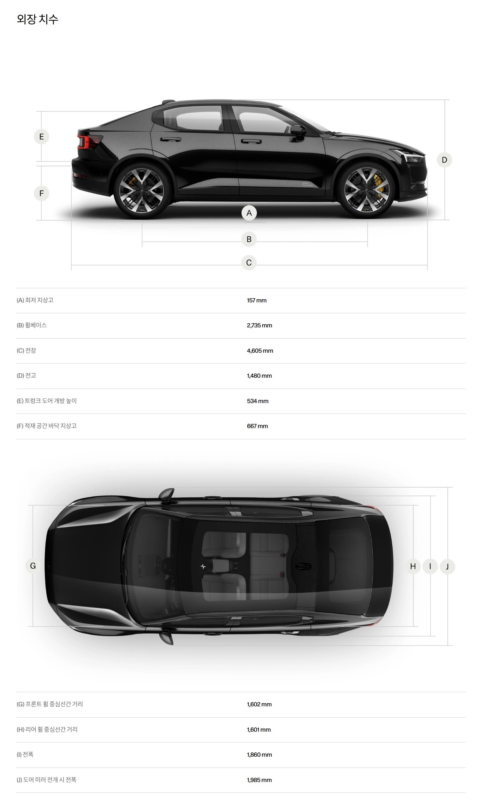 마지막으로 폴스타2 제원표 입니다.
