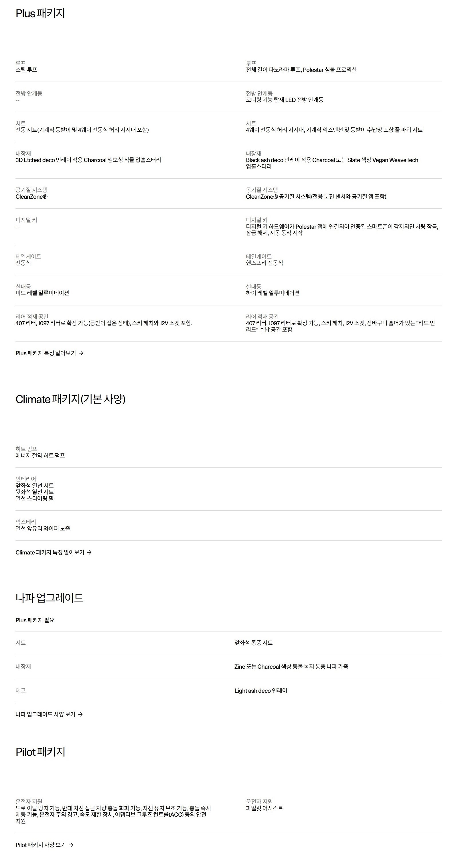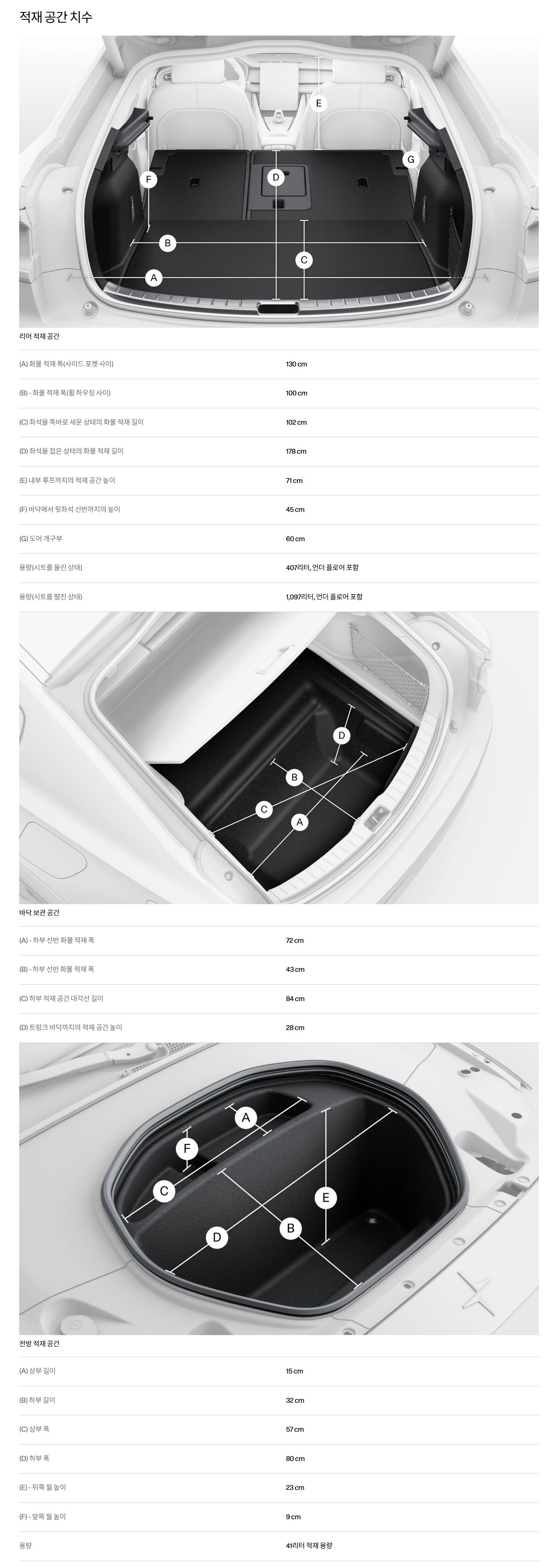 구체적인 성능은 물론이고, 특히 다양한 공간에 대한 수치를 전부 제공해 주는 것이 폴스타 특징입니다.
