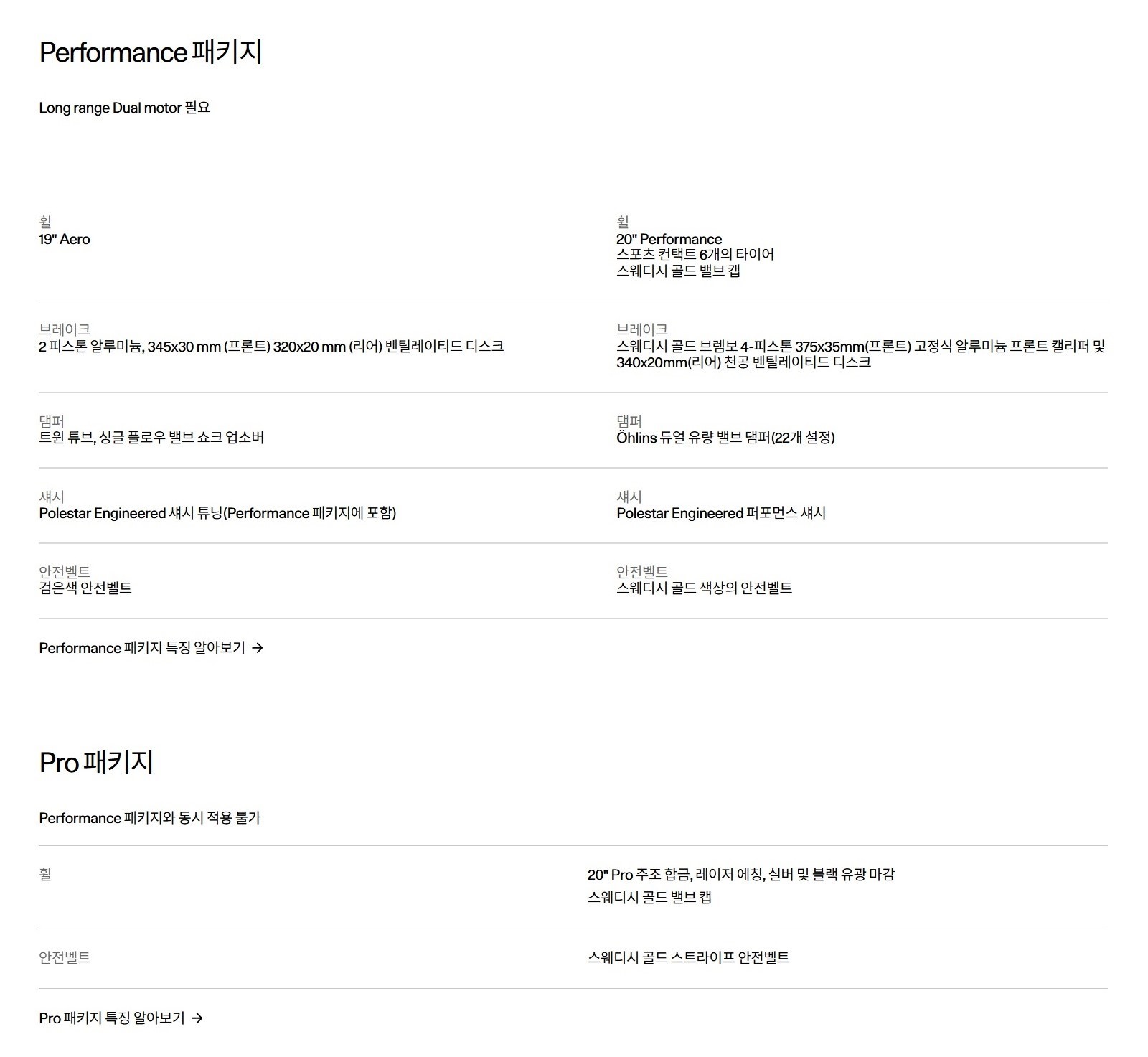 상기와 같으며...프로팩과 퍼포먼스 팩은 싱글 모터 사양에서는 선택 불가입니다.