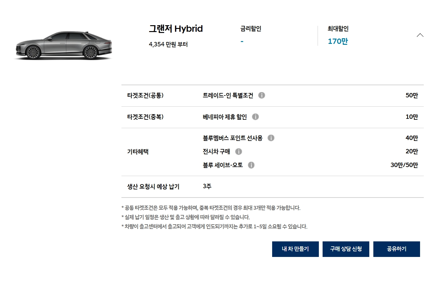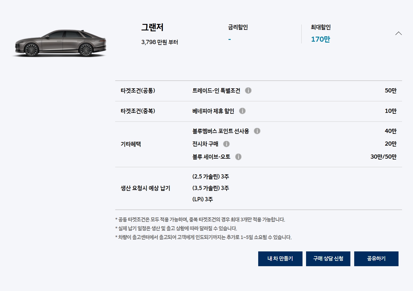 그랜저는 종종 할인을 해왔던 차량인데, 지난달도 그렇고, 이번 달에는 할인이 없습니다.
