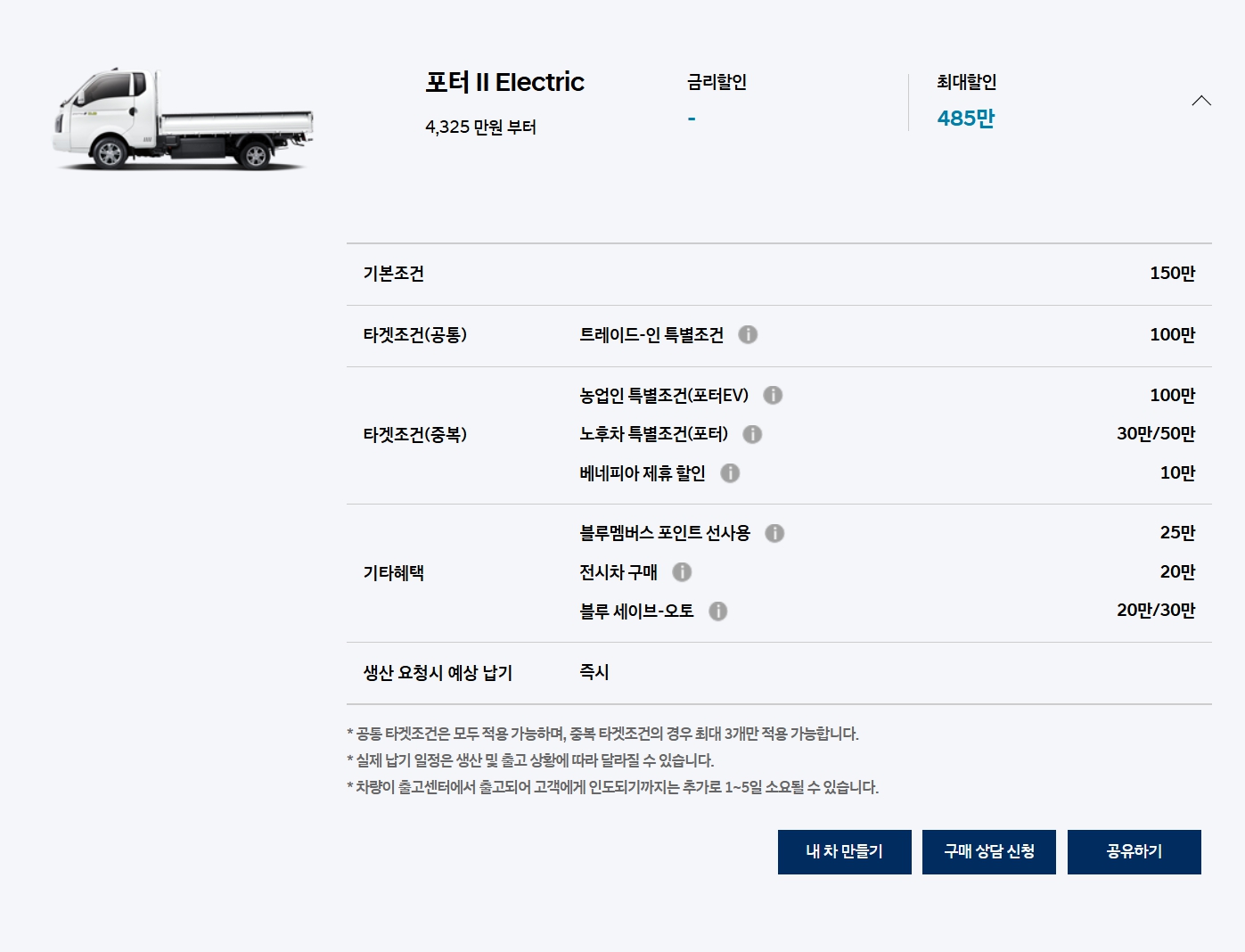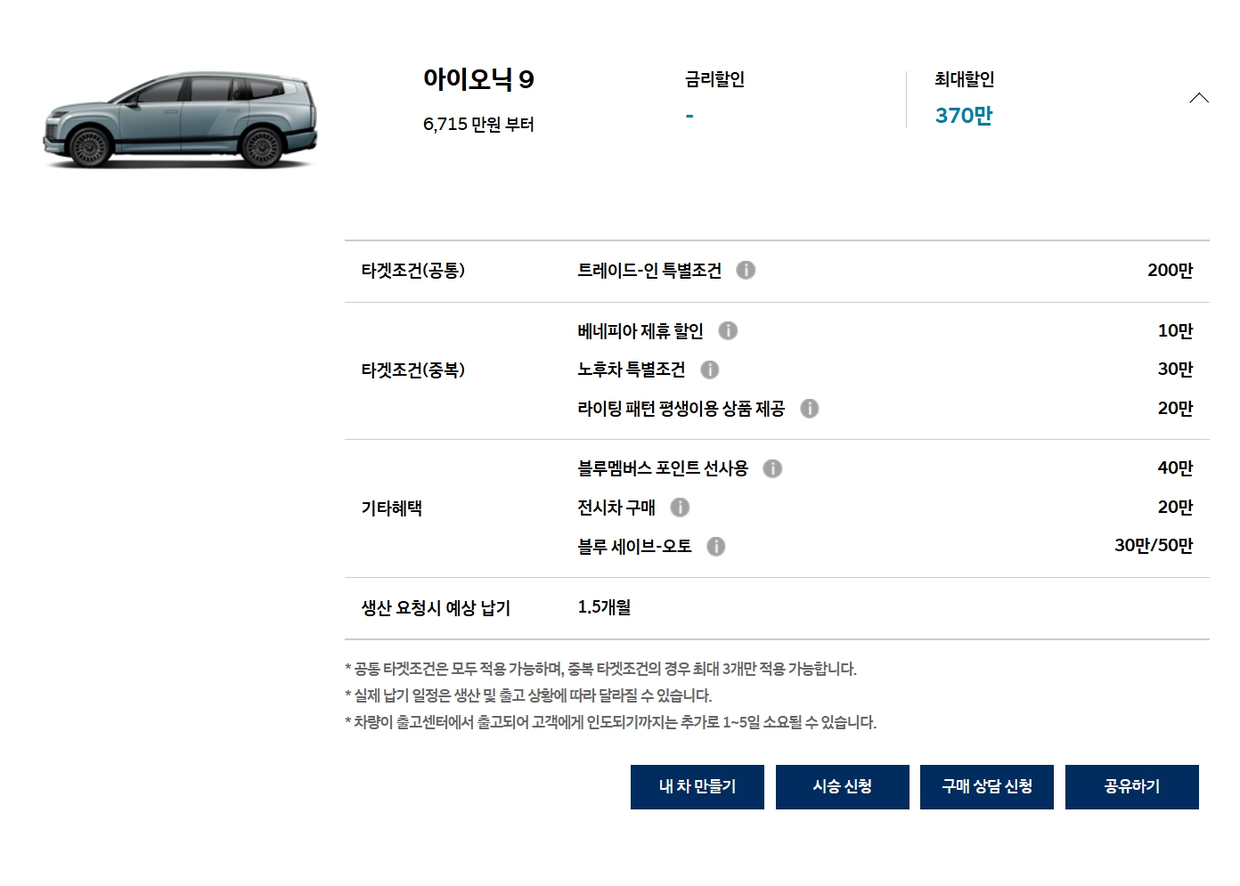 가장 최근에 출시한 전기차여서 그런지, 할인은 전혀 없습니다.