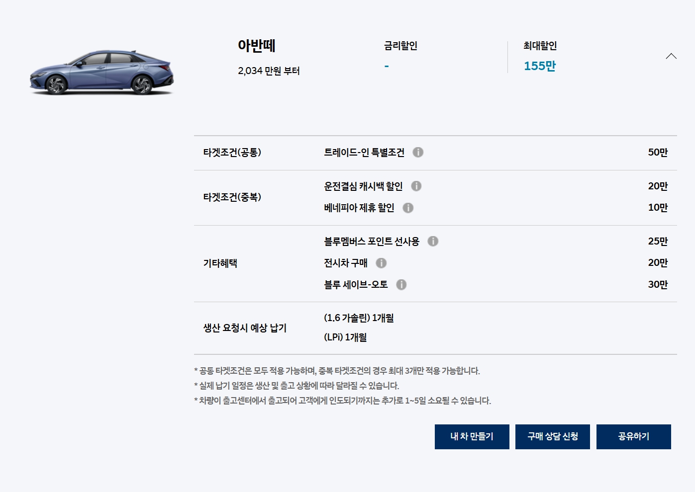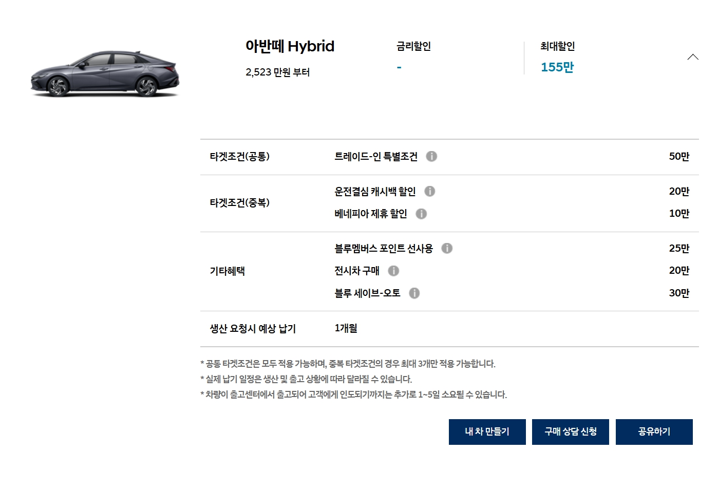 참고로, 기본형 아반떼나 아반떼 하이브리드는 원래 할인이 없으니, 그러려니 하시면 되겠습니다 ㅠ