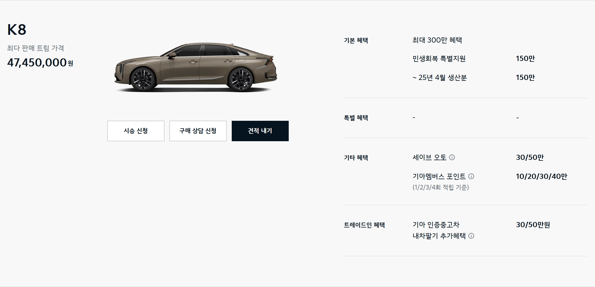 K8 또한 K5와 마찬가지로, 26년형이 출시하였기에, 할인이 되는 모델은 동일하게 25년형이 아닐까 싶습니다.